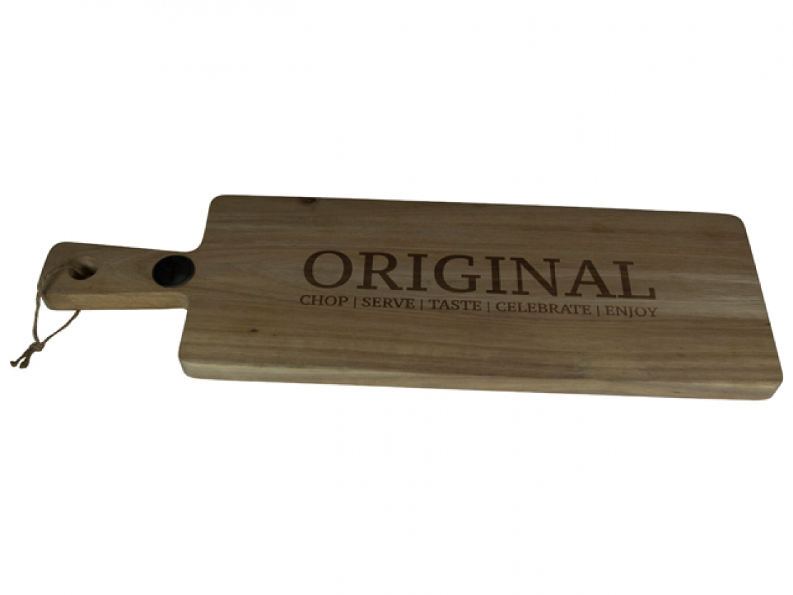 De acacia houten snijplank van Gusta is met zijn warme uitstraling ook geschikt als serveerplateau op tafel.