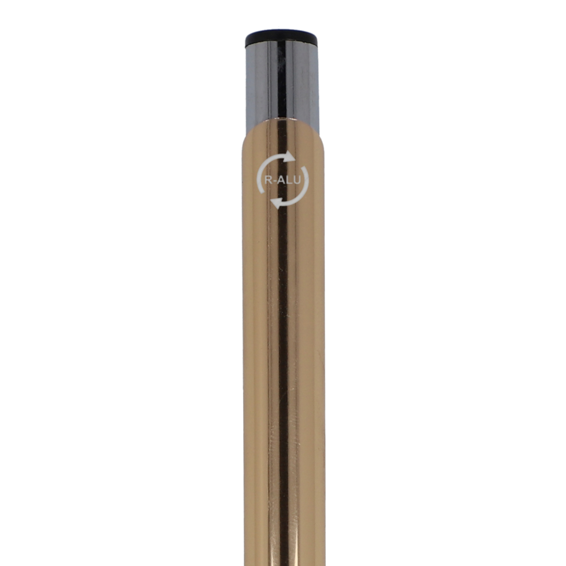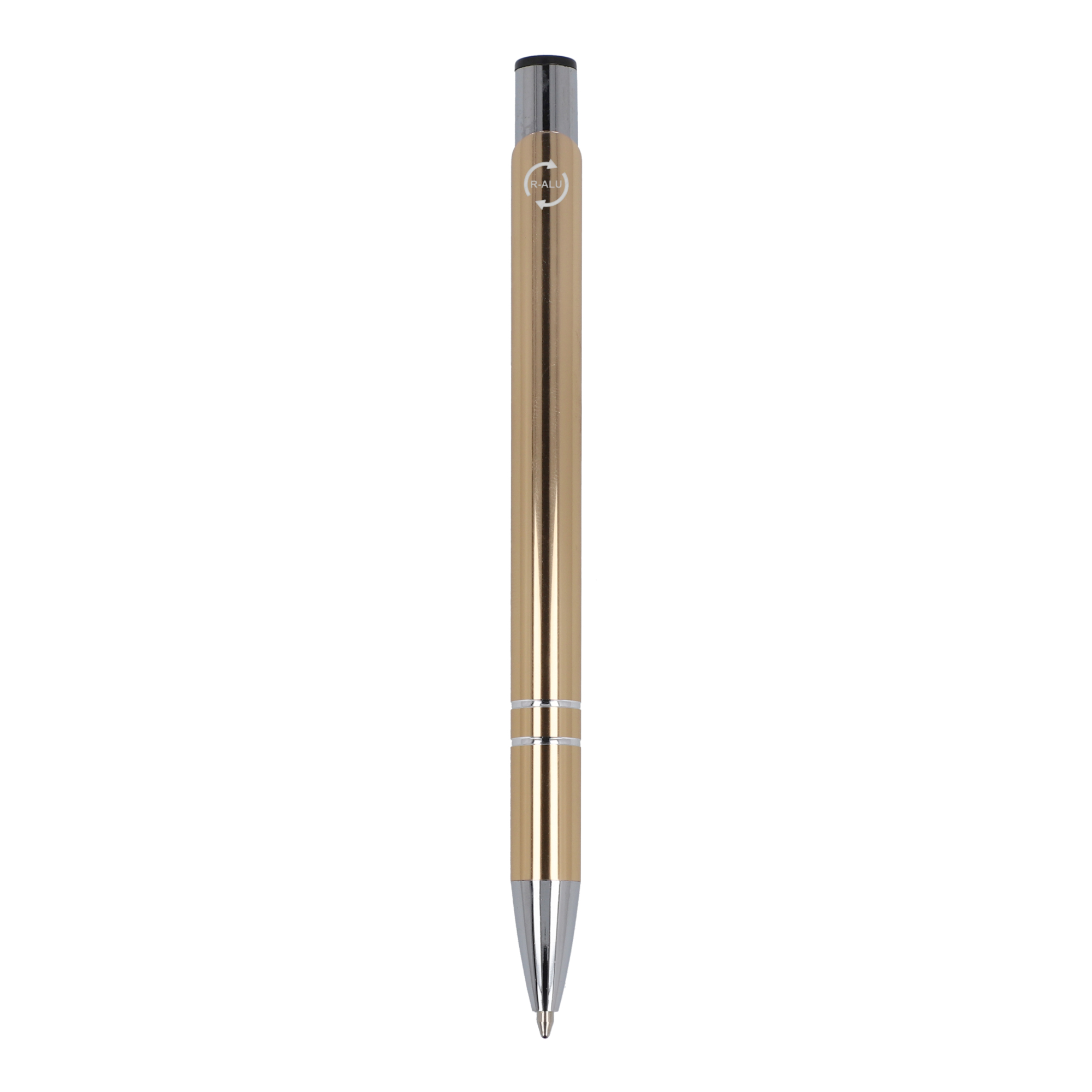 De gerecycleerde aluminium editie van onze populaire Alicante-pen, met een glanzende afwerking; een elegante aluminium balpen met twee ringen in het lichaam van de pen om het een speciale uitstraling te geven. De pen komt met blauwe inkt.