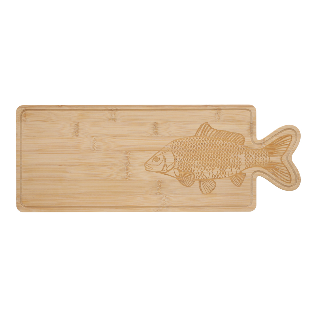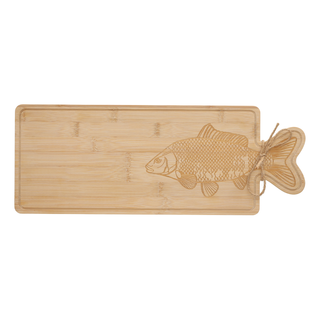 Deze bamboe serveerplank is de ideale manier om je hapjes of kaasplank op een stijlvolle manier te presenteren. De gravering van de vis voegt een unieke touch toe waardoor de plank ook als decoratief item een mooie toevoeging is aan je keuken.