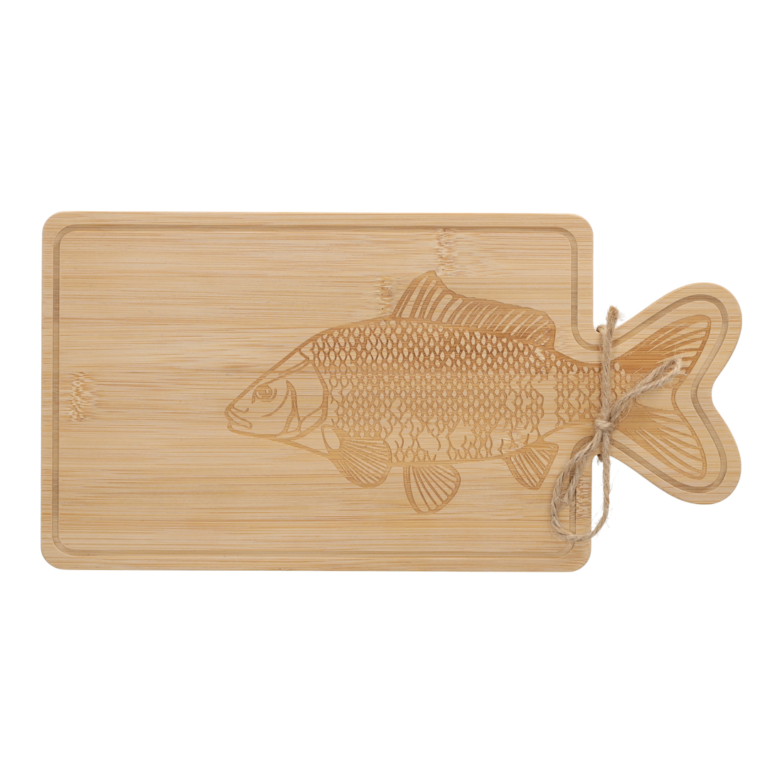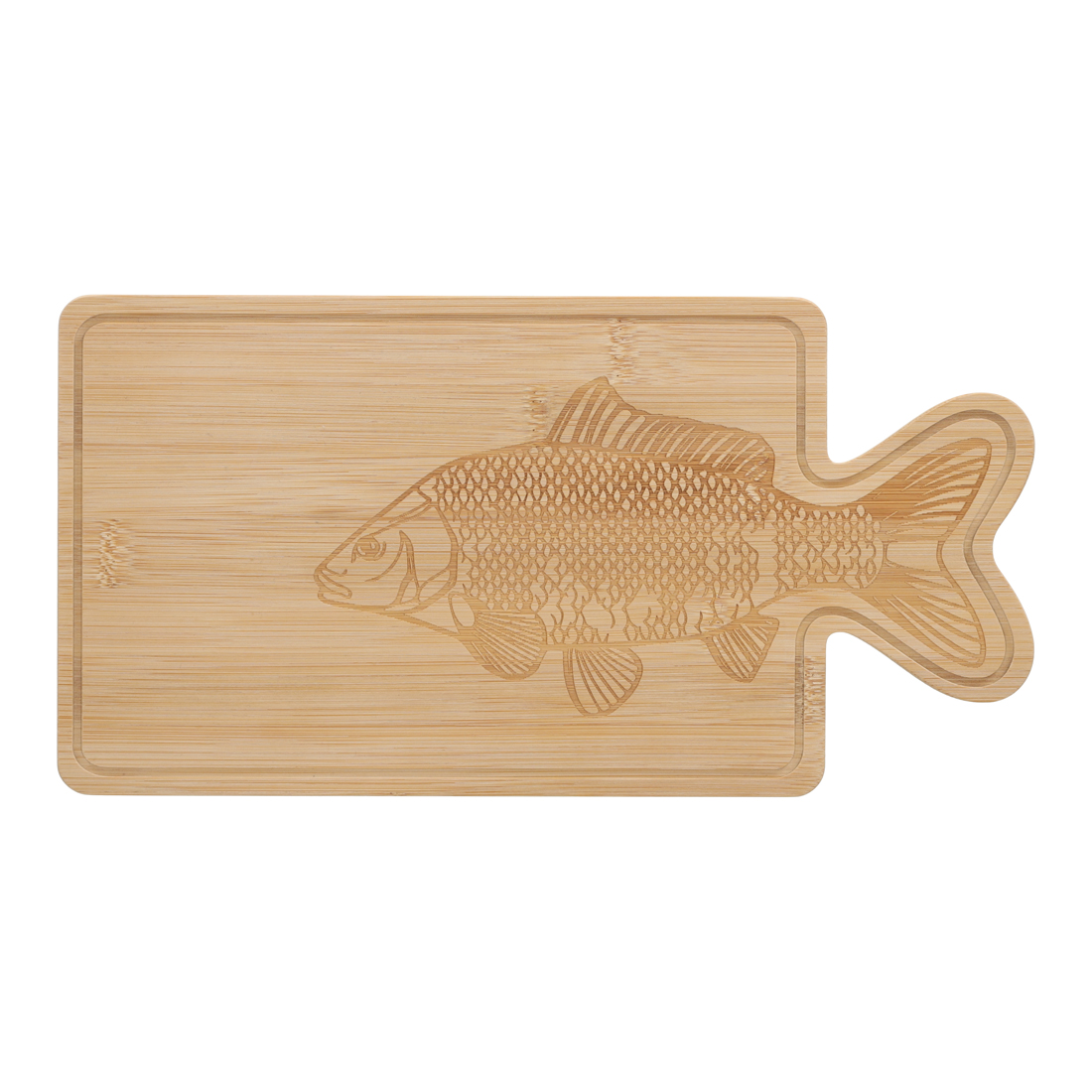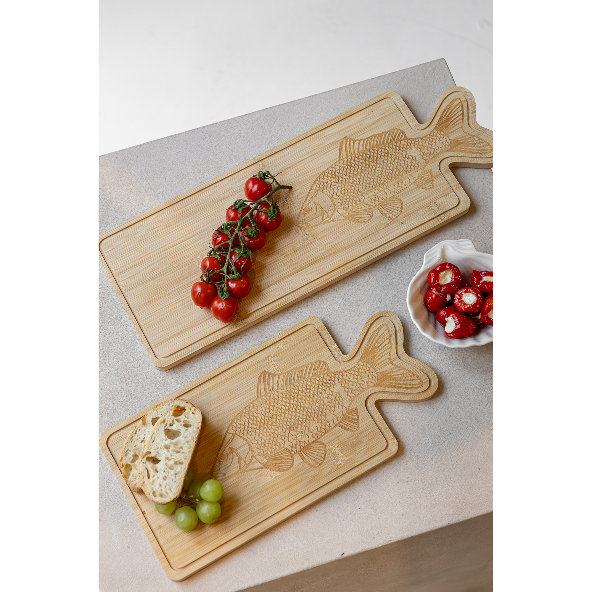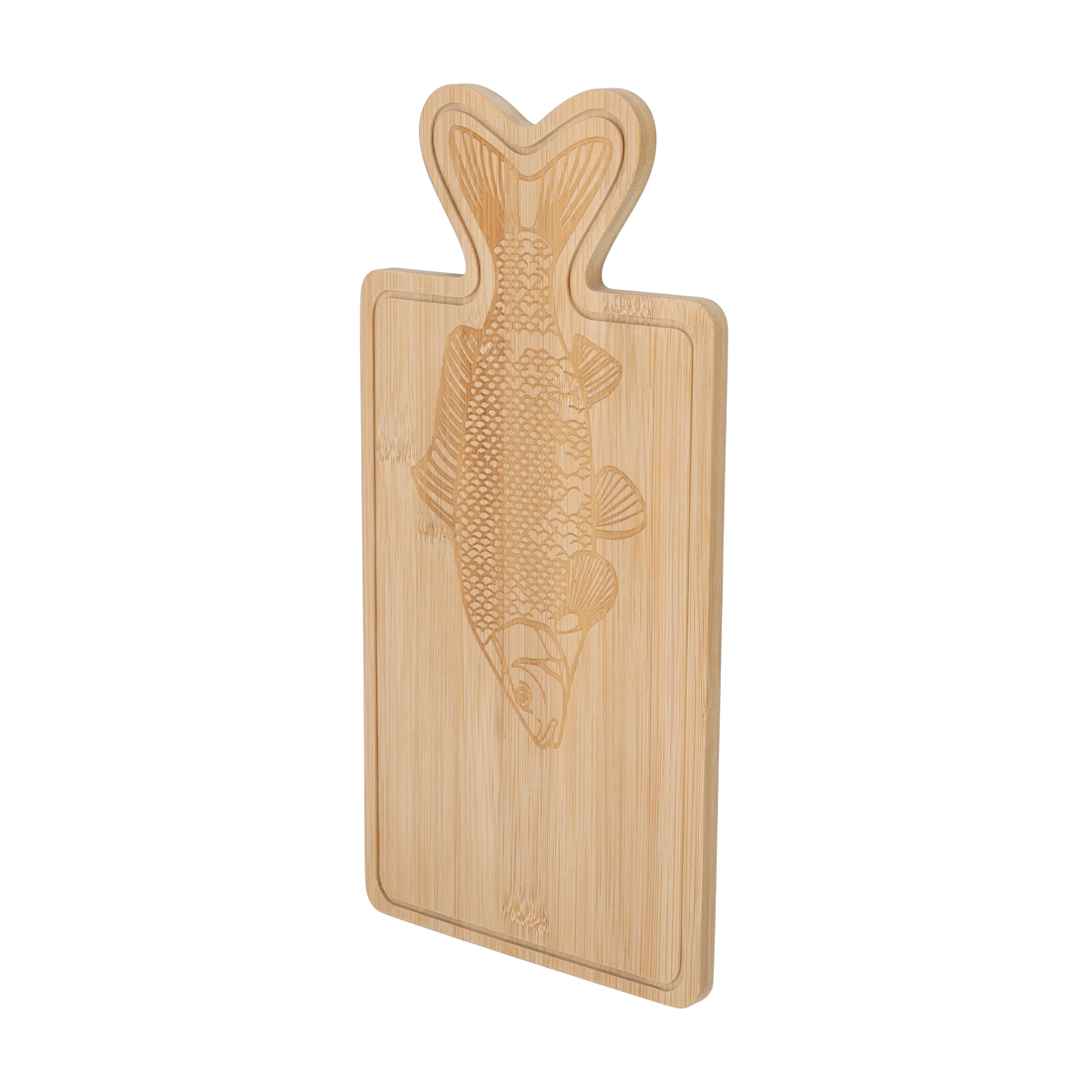Deze bamboe serveerplank is de ideale manier om je hapjes of kaasplank op een stijlvolle manier te presenteren. De gravering van de vis voegt een unieke touch toe waardoor de plank ook als decoratief item een mooie toevoeging is aan je keuken.
