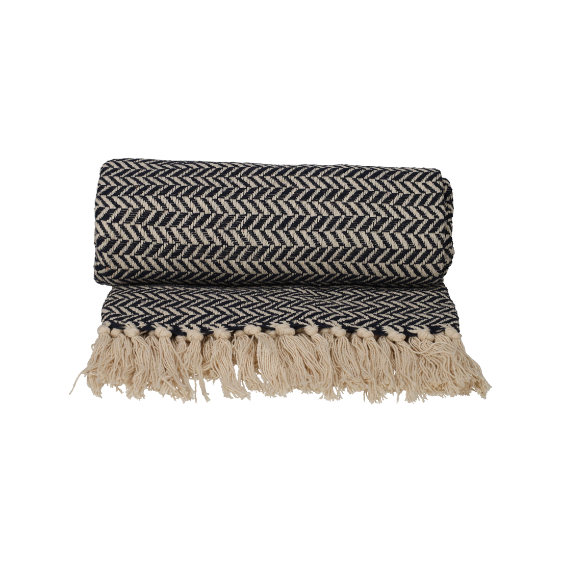 Dit plaid uit India is gemaakt van gerecycled katoen en heeft daardoor een duurzaam karakter. Met het opvallende patroon en de trendy kwastjes is dit plaid een leuke verschijning in je interieur. Leg het plaid uitgevouwen op de bank of op het bed of gebruik dit kleed om heerlijk onder te kruipen tijdens de koude winterdagen.