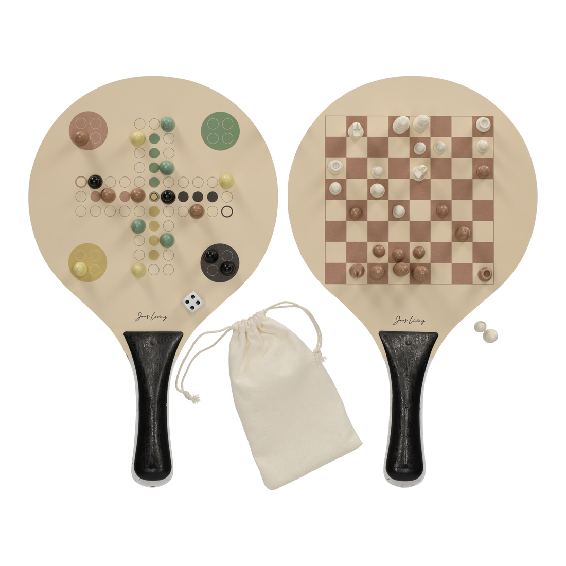 Met deze beachball set kun je zowel een sportieve middag beleven als je hersens laten kraken. De set bevat twee rackets, waarvan één zijde als bordspel te gebruiken is, en een bal. Op het ene racket staat een schaakspel, perfect voor strategisch denken, terwijl op het andere racket het bordspel Winning Moves staat, wat geschikt is voor jong en oud. Deze set biedt de perfecte combinatie van actie en uitdaging!