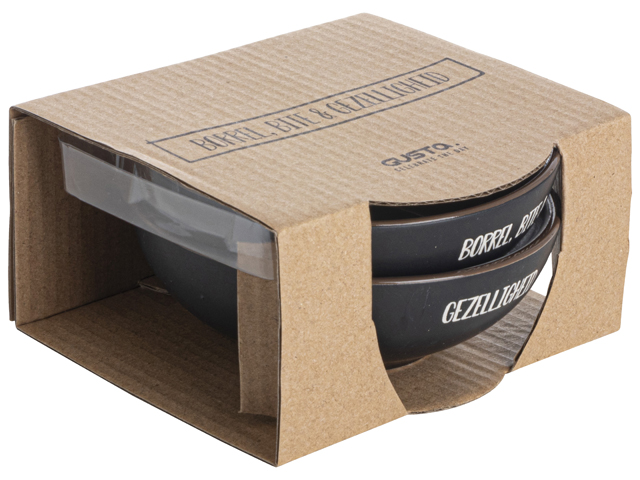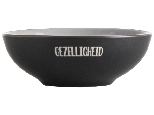 Kijk dat is gezellig! Deze 2 zwarte schaaltjes zijn voorzien van de tekst "Gezellig even bijborrelen" en zijn dus ideaal als je even lekker wilt borrelen met je partner, je beste vriendin of de buurvrouw. In de schaaltjes presenteer je je favoriete borrelnootjes, olijven, kaasblokjes en nog veel meer. Schenk er een borreltje bij en je bent klaar voor een leuke avond!