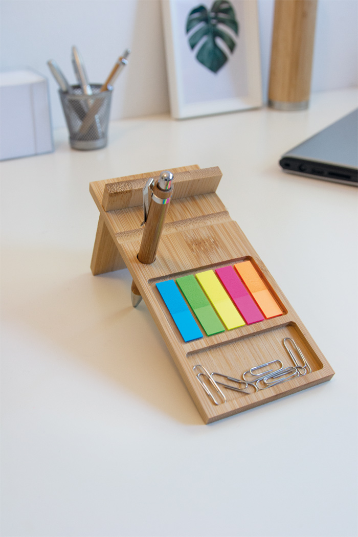 Bureauset DESK MATE: praktische organiser met gat voor balpen (incl. zwartschrijvende balpen), 5 verschillende kleuren memostrookjes, 5 paperclips en uitsparing voor de smartphone