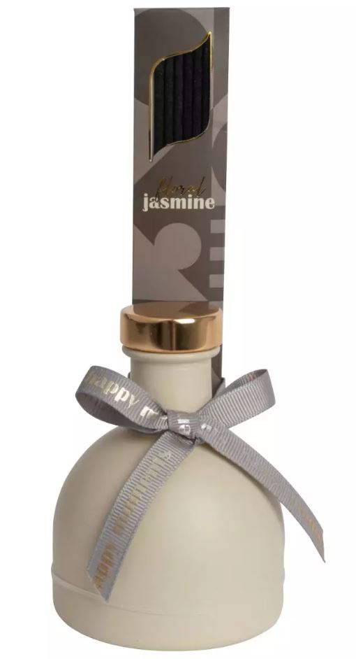 Deze stijlvolle diffuser combineert een modern design met een bloemige jasmijngeur.