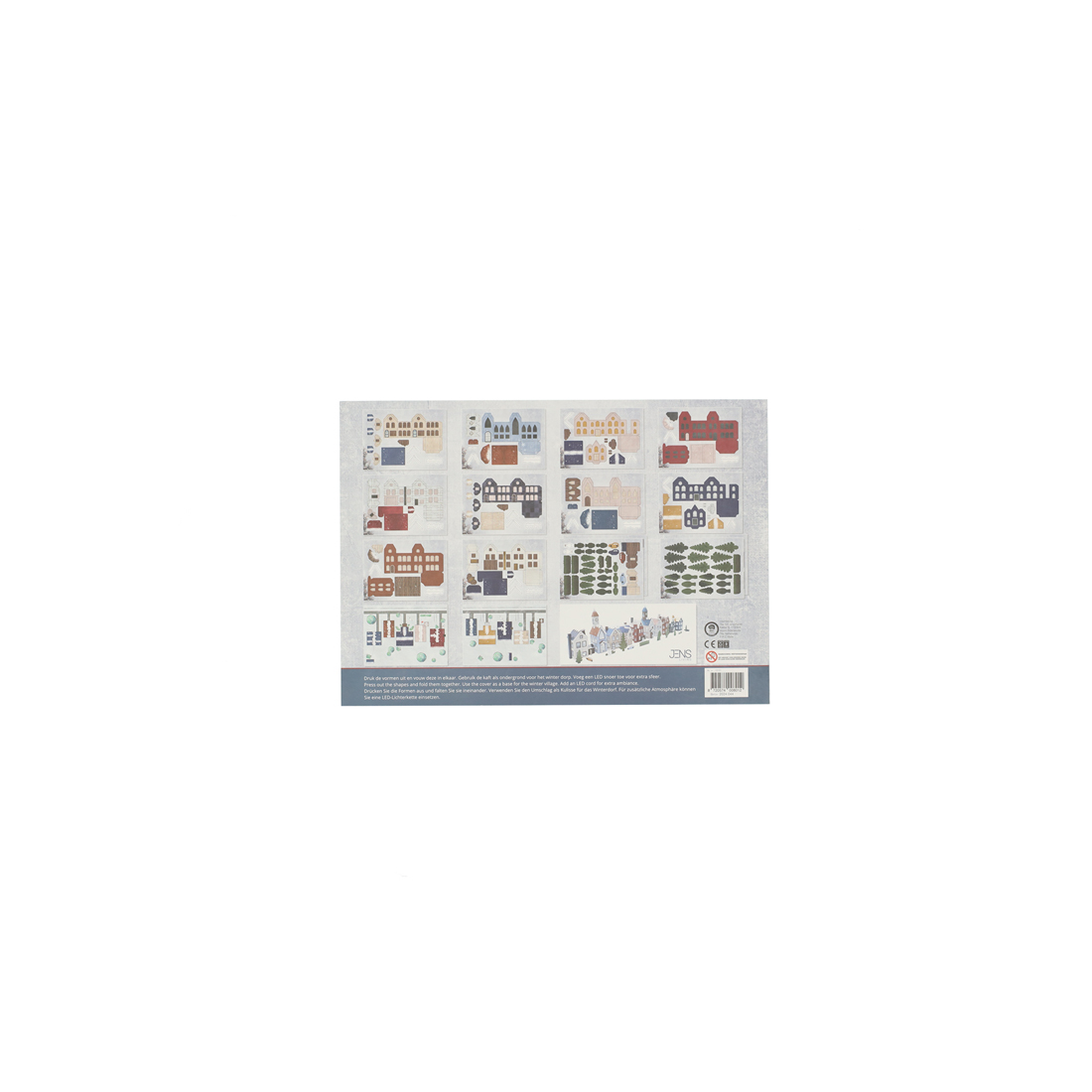 Bouw een prachtig kerstdorp met dit doe-het-zelf pakket. De set bestaat uit een plattegrond waarop alle huisjes neergezet kunnen worden. In totaal kun je tien vrolijke 3D huisjes in elkaar zetten. Daarnaast zijn er ook nog twee vellen met decoraties die gebruikt kunnen worden om het geheel aan te kleden. Voeg LED verlichting toe voor extra sfeer en creëer in een handomdraai een prachtig winters dorpje!