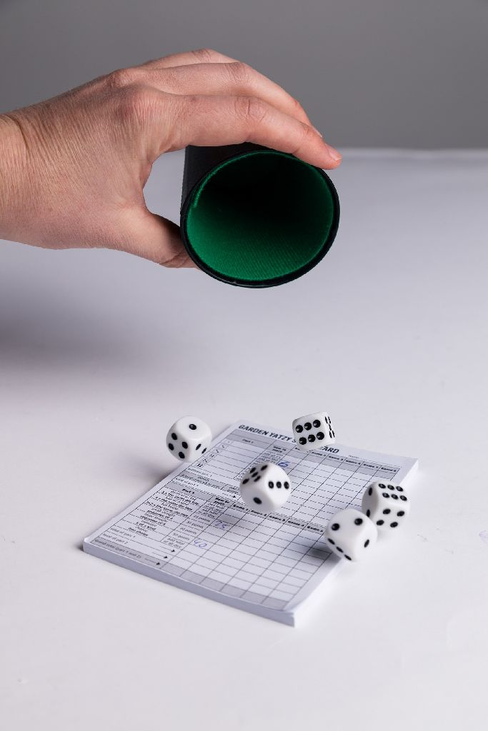 Dobbelset en scoreblok van Clown Games! De set bestaat uit 5 dobbelstenen, een dobbelbeker en een scoreblok. Voor 1-6 spelers. Geschikt voor kinderen vanaf 5 jaar.