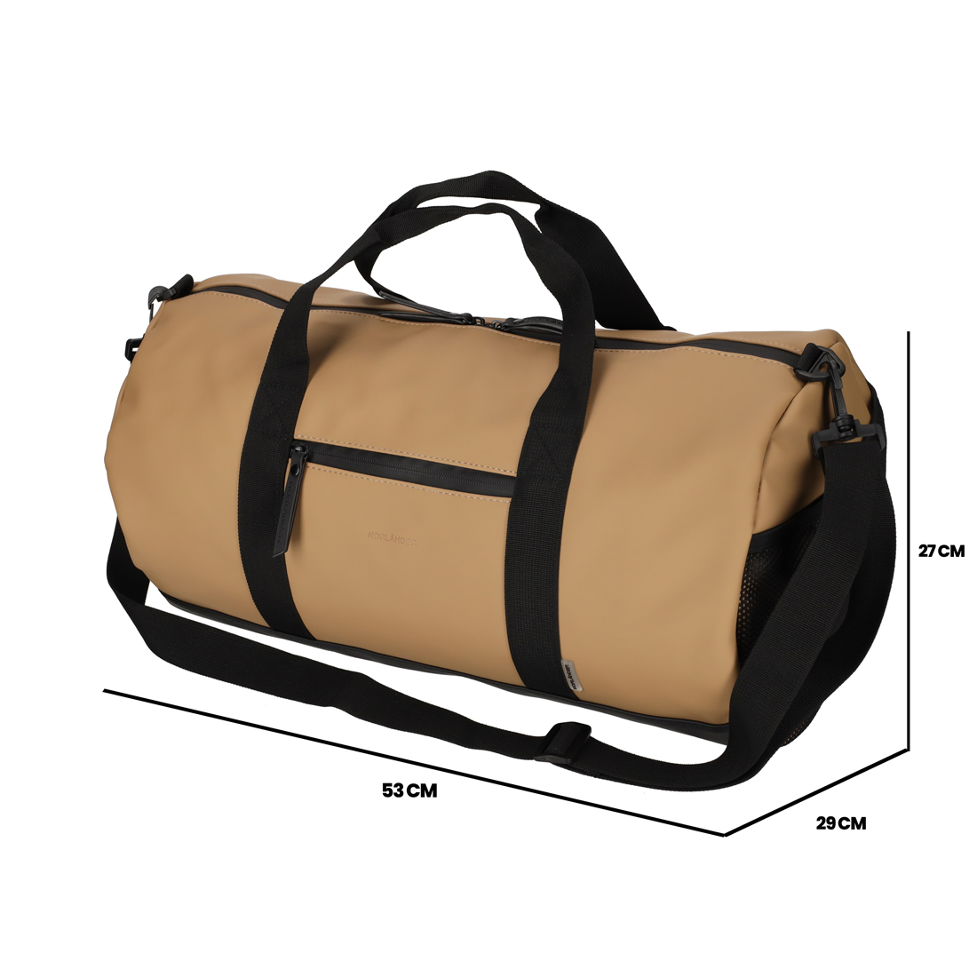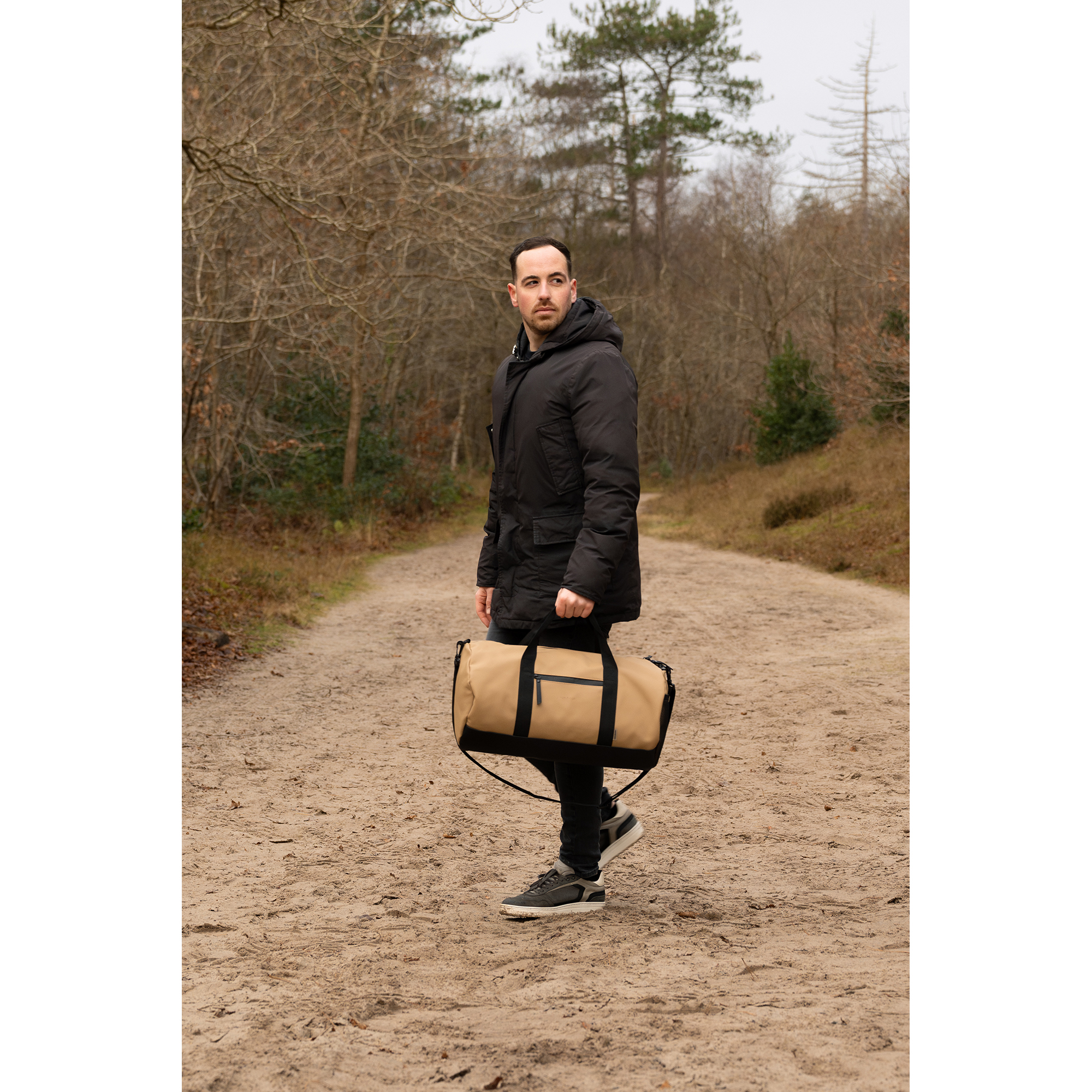 Deze handige duffeltas is ideaal voor elke gelegenheid. Gebruik hem voor een weekendje weg of voor een bezoek aan de sportschool. De tas is gemaakt van Dull PU, een waterafstotend vegan leer. De tas is voorzien van waterdichte ritsen en kan worden gedragen aan de handvatten of de afneembare schouderband. De binnenzijde bestaat uit een groot hoofdcompartiment, een ritsvak en twee netzakjes. Daarnaast bevindt zich aan de zijkant van de tas een netvak voor extra opbergruimte.