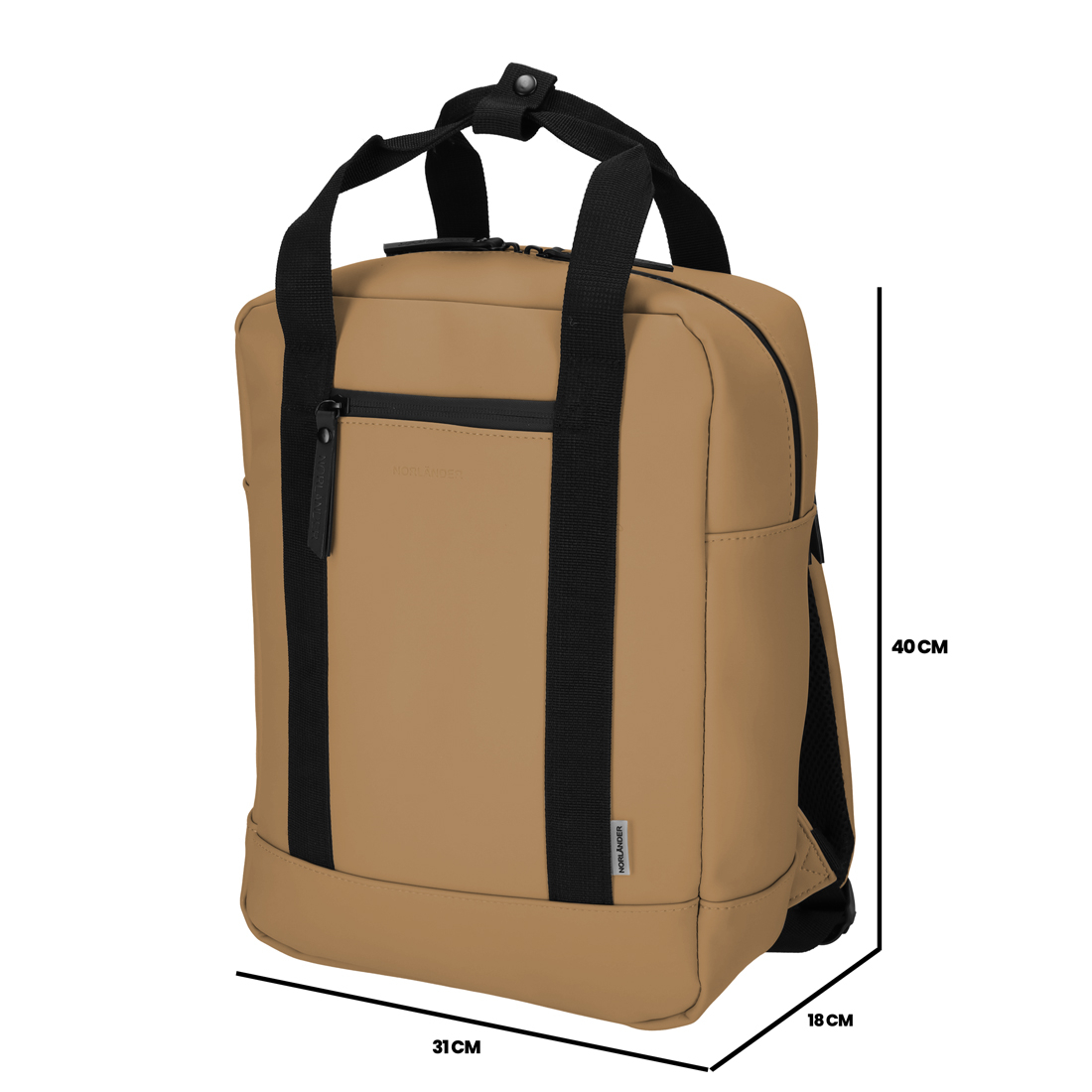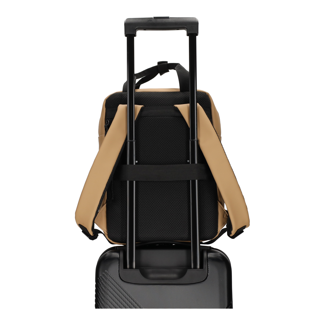 Of je nu naar school,werk of op avontuur gaat, deze stoere rugtas is altijd een goede keuze. De tas is gemaakt van een waterafstotend vegan leer, de ritsen zijn volledig waterdicht. Daarnaast beschikt de rugtas over een trolleyband, zodat deze makkelijk op een trolleystang bevestigd kan worden. De binnenzijde bestaat uit een groot hoofdcompartiment, laptopvak en twee netzakjes voor kleine accessoires. Aan zowel de voorzijde als de achterzijde bevindt zich een extra afsluitbaar opbergvak. Met de verstelbare schouderbanden pas je de tas eenvoudig aan naar het gewenste draagcomfort.