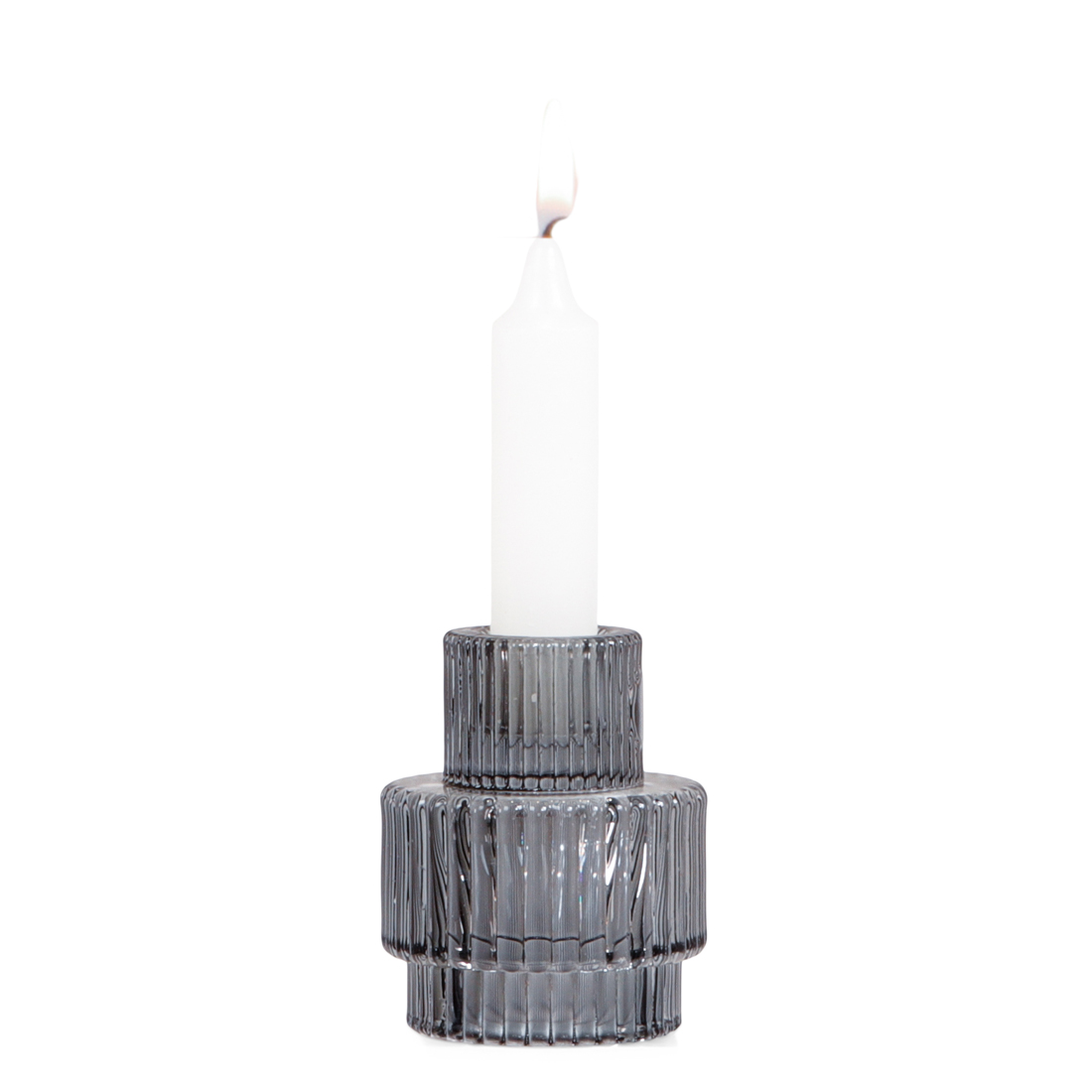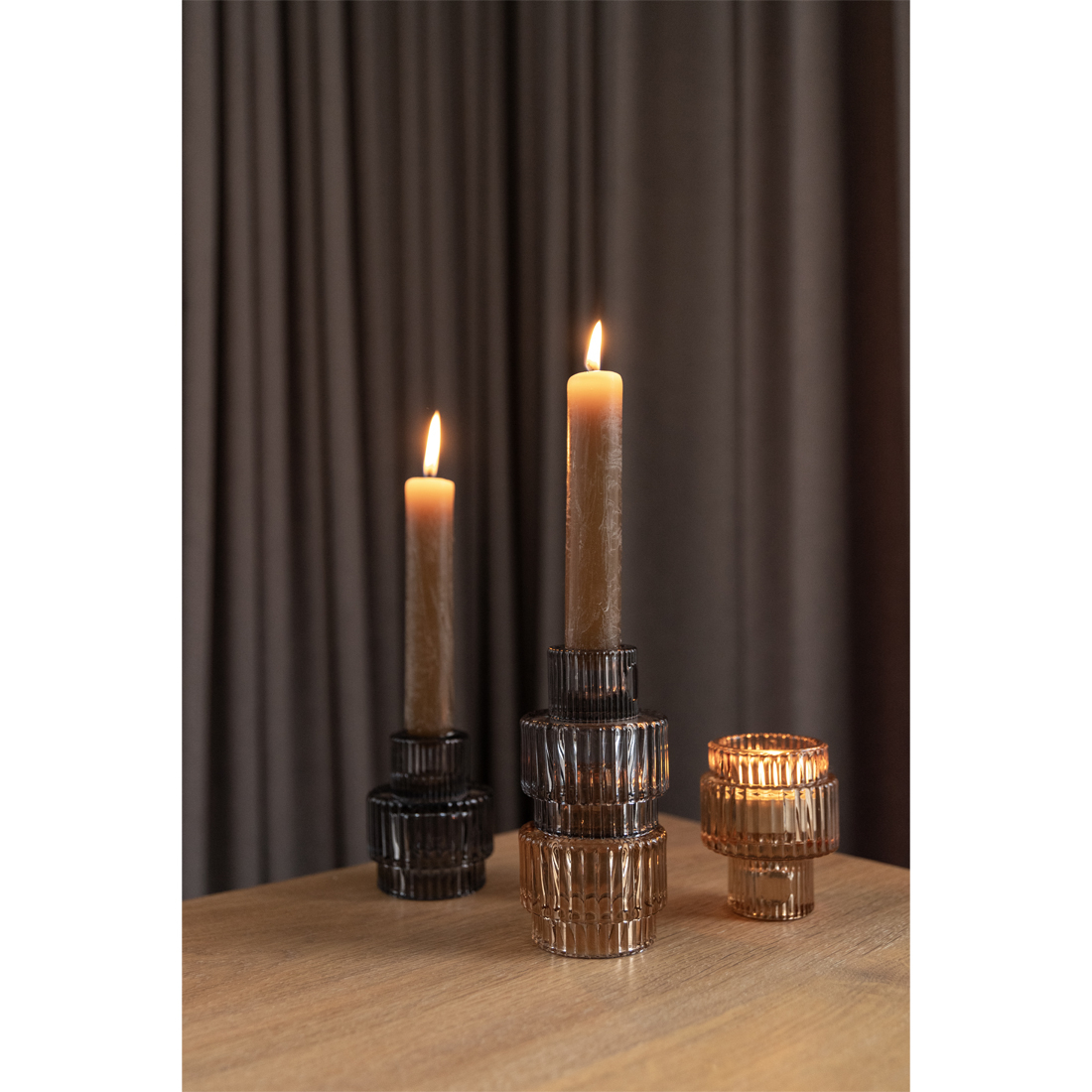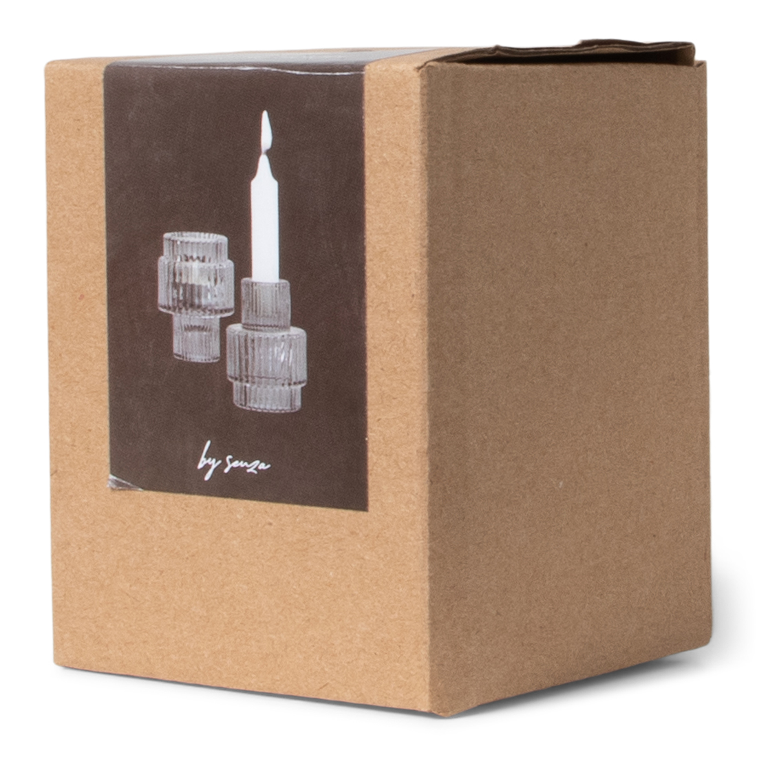 De trendy duo kaarshouder kun je op twee verschillende manieren gebruiken. Zo kun je er een waxinelichtje in doen en kun je in de andere kant een mooie dinerkaars laten branden. De kandelaar is tevens stapelbaar, waardoor je met meerdere kandelaren bij elkaar een speels effect kunt creëren. Het geribbelde glas zorgt voor een chique uitstraling. Deze kaarshouder geeft elke gelegenheid meer sfeer!