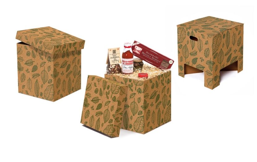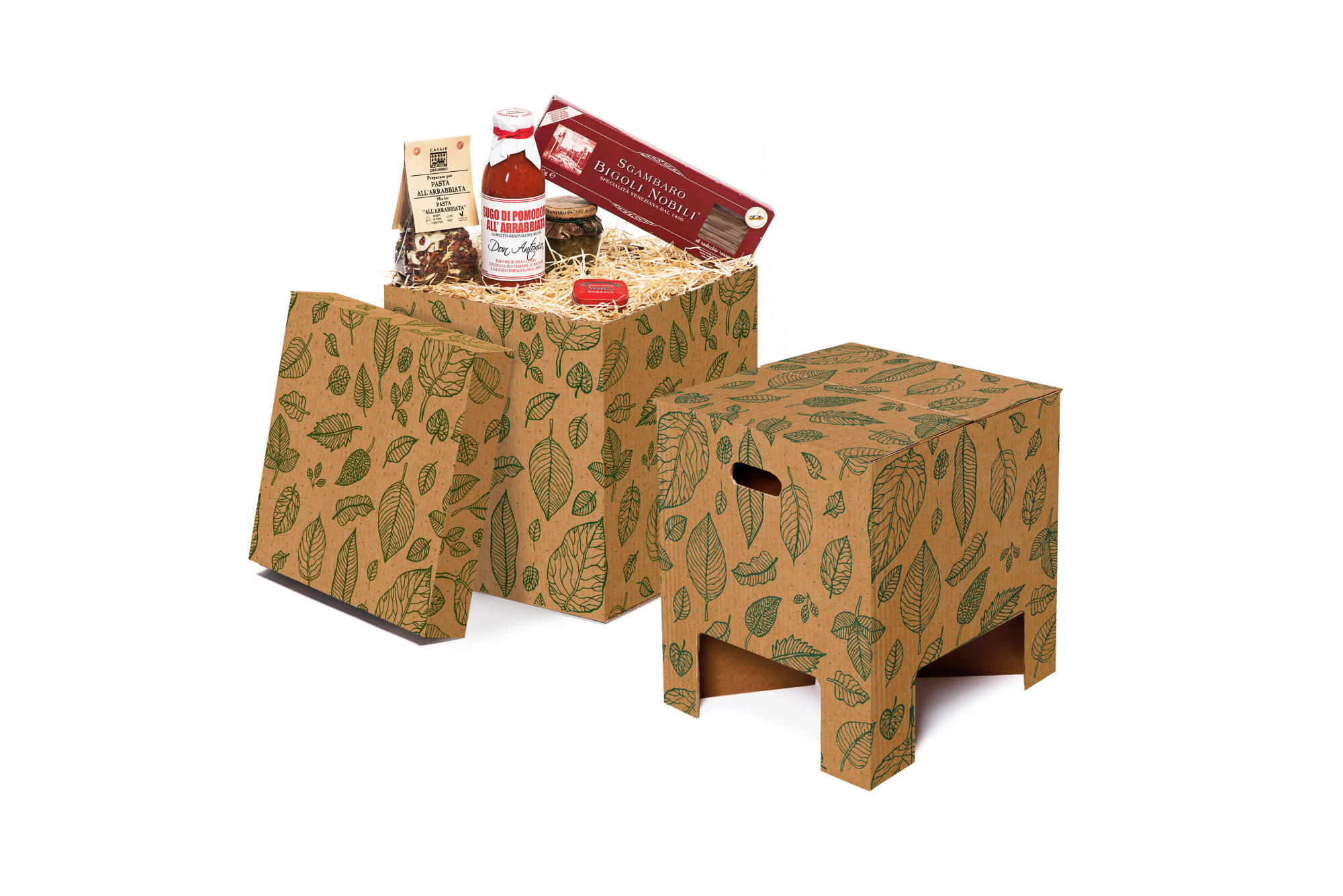 Jaarlijks worden er na de feestdagen miljoenen cadeauverpakkingen weggegooid. ‘Pure verspilling’ vond Tim Várdy, eigenaar en bedenker van de Dutch Design Chair en zijn stijlvolle krukje van karton kreeg een nieuwe toepassing. De Dutch Design Chair wordt eerst gebruikt als kerstverpakking en vervolgens kan er in tien seconden een krukje van worden gevouwen. Het klassieke kerstpakket wordt dan zelfs zonder inhoud een cadeau om trots op te zijn!