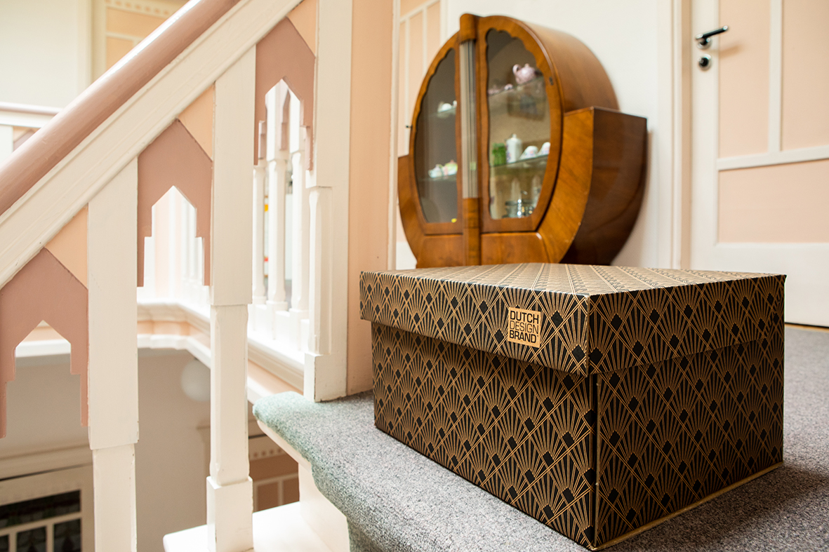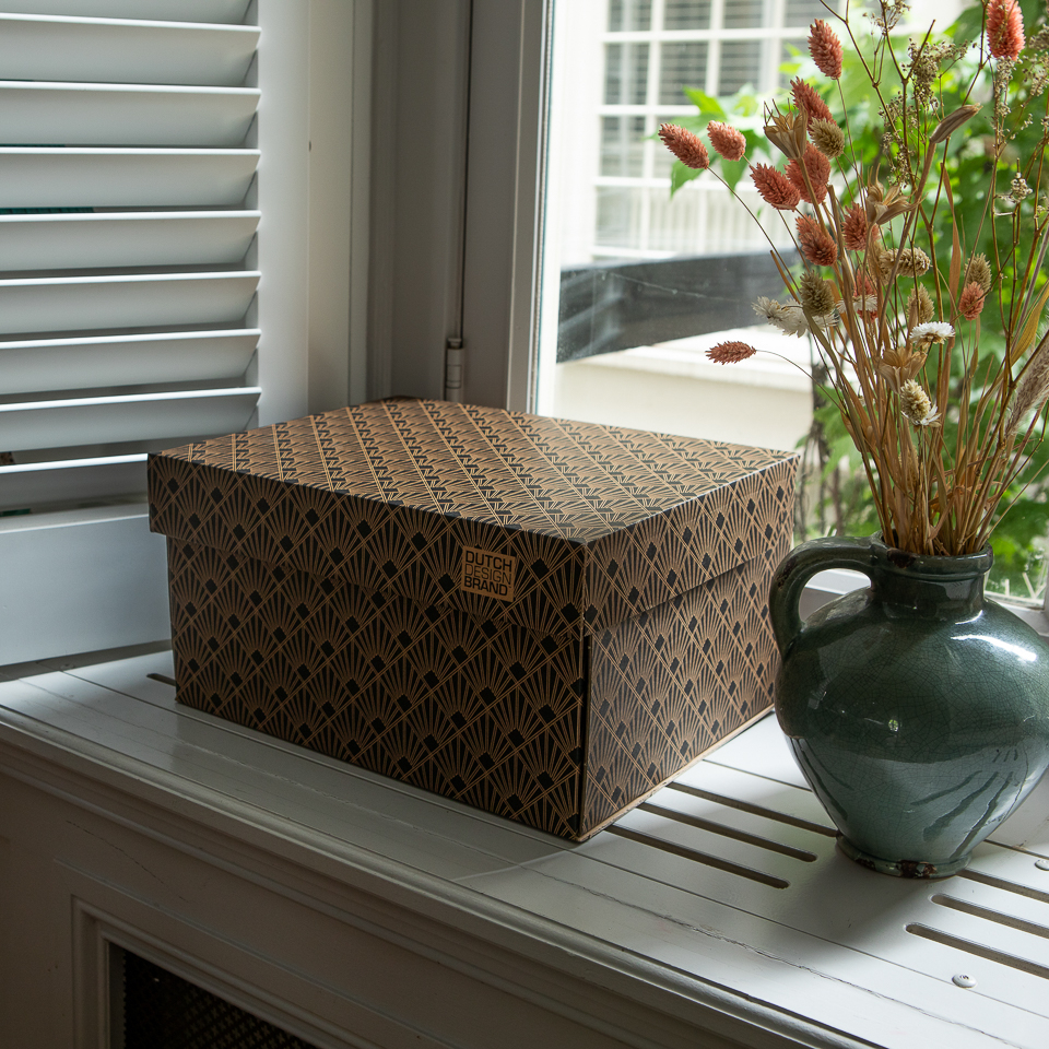 De Dutch Design Storage Box is gemaakt van FSC gecertificeerd karton en wordt volledig in Nederland geproduceerd. De Storage Box is erg sterk en zeer gebruiksvriendelijk doordat de deksel aan de doos vast zit.