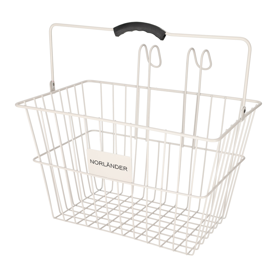 Deze afneembare fietsmand is ideaal voor al je fietsavonturen. Klik de haken vast aan je fietsendrager of stuur en je bent helemaal klaar om op pad te gaan. Wanneer je de fietsmand wilt gebruiken tijdens het doen van boodschappen, haal je deze gemakkelijk van de fiets af door middel van het handvat. De mand is gemaakt van stevig staal, waardoor hij duurzaam en betrouwbaar is. De mand wordt geleverd met foamstickers ter bescherming van je fiets en klittenband om de mand extra stevig te bevestigen.