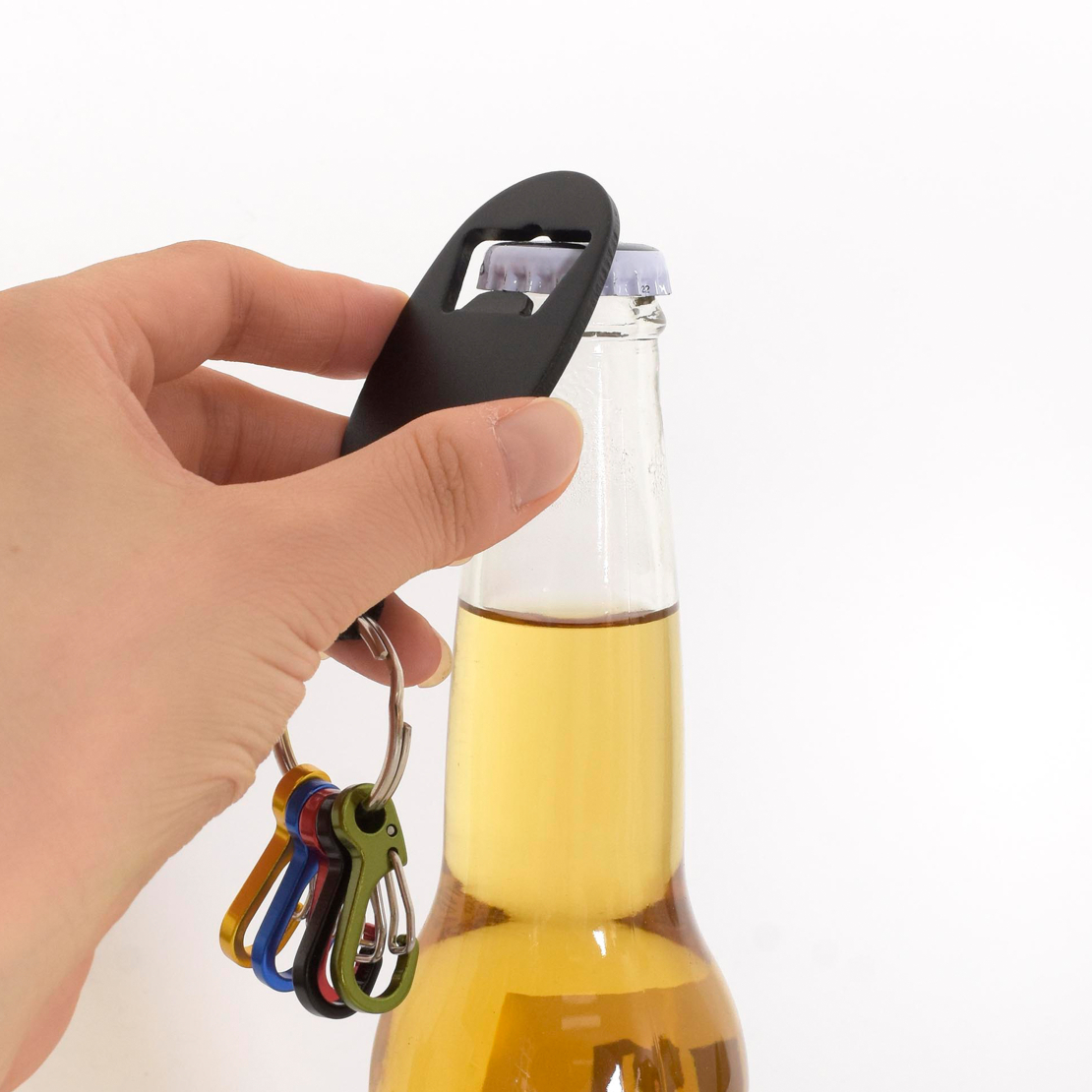Sleutelhanger met flesopener gemaakt van gerecycled aluminium, met 5 kleine karabijnhaken om je sleutels te organiseren. Een praktisch en milieuvriendelijk accessoire voor dagelijks gebruik.