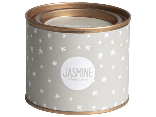 Verpakt in een verfblikje, alleen zit hier geen verf in maar een heerlijke geurkaars in de geur jasmijn. Deze warme en zoete geur ruikt goed in elke ruimte en brengt een fijne sfeer in huis. Het koperen blikje heeft een papieren wrap met kleine sterretjes. Ook een leuk klein cadeautje om weg te geven.