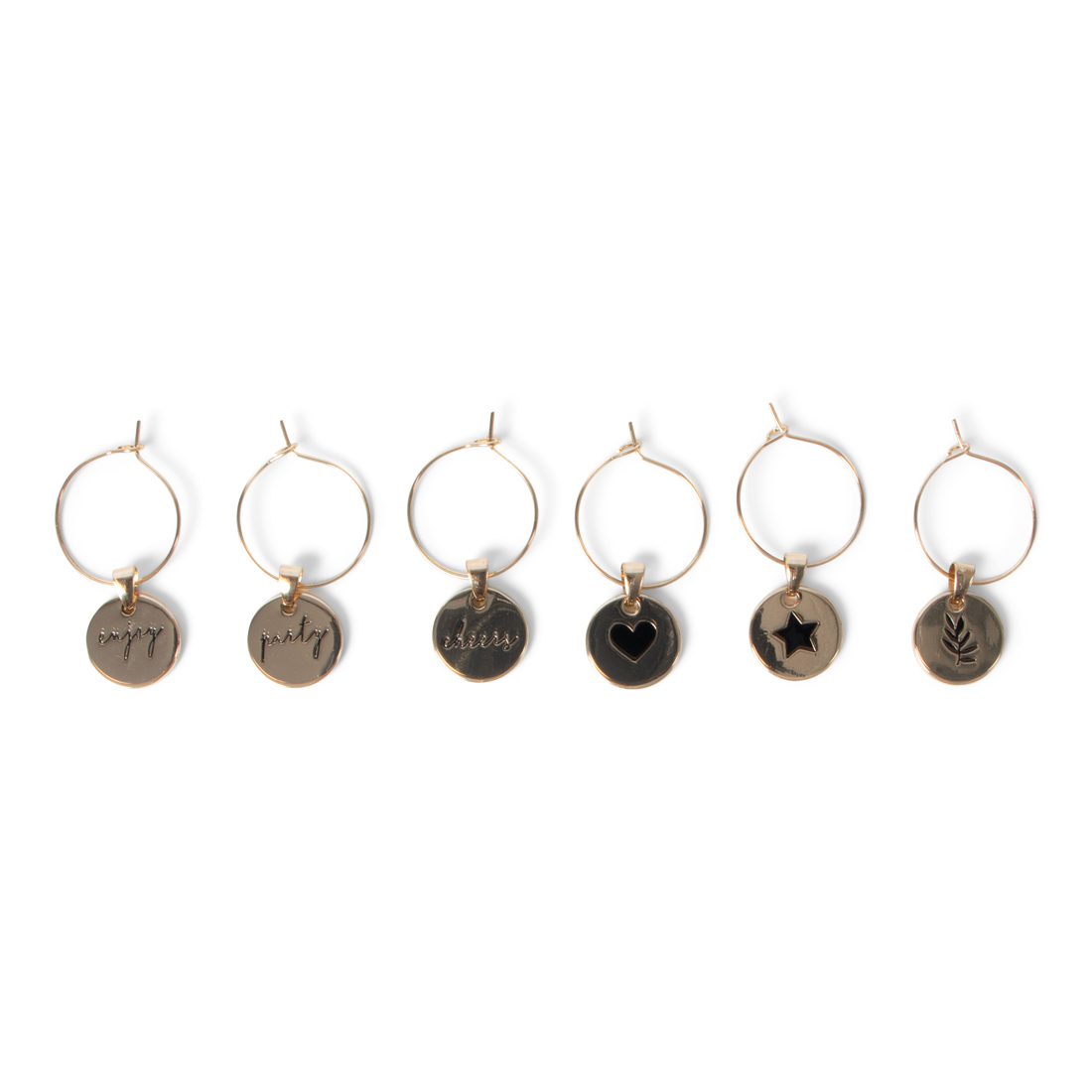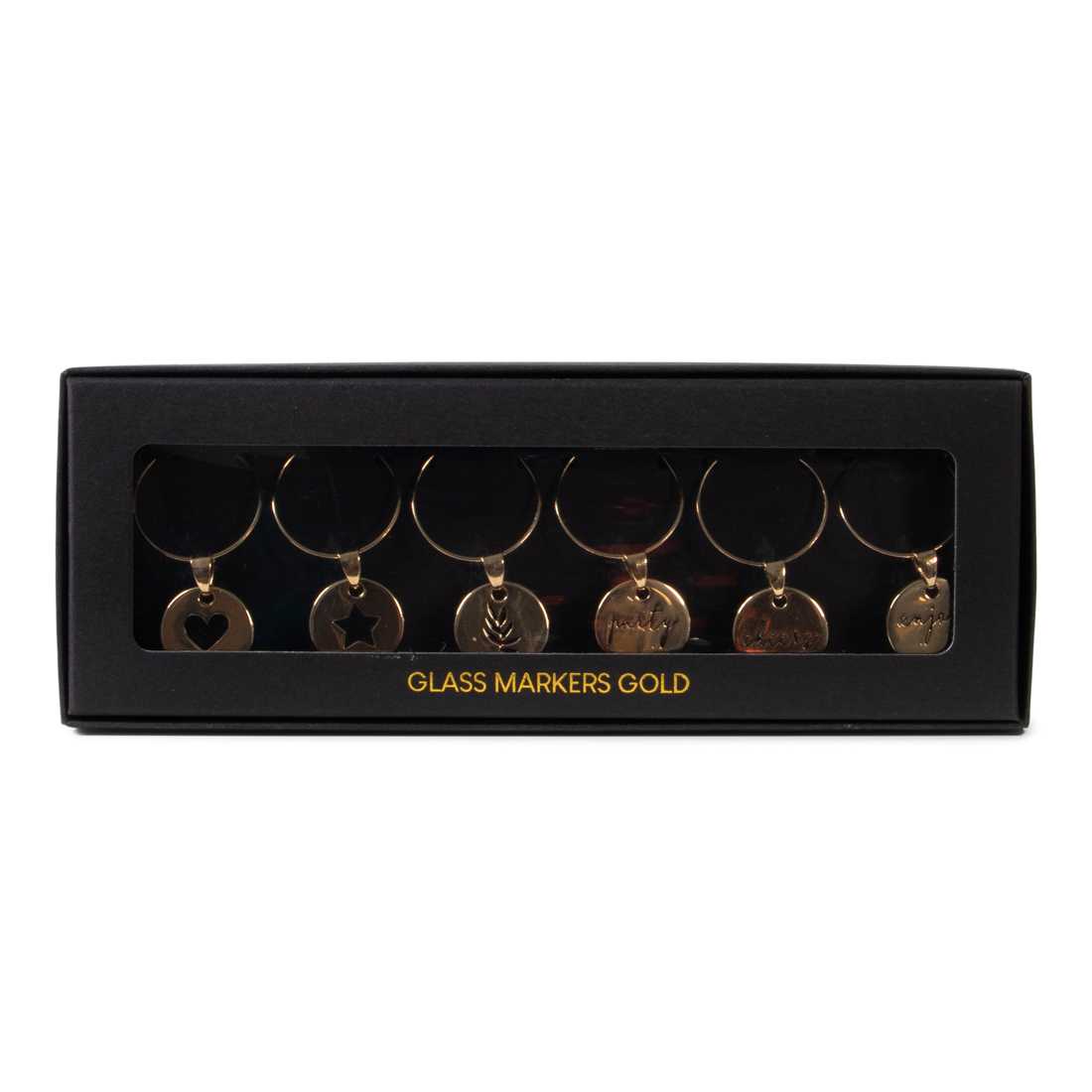 Met deze glasmarkers vergeet je nooit meer welk glas van wie is. Iedere glasmarker is voorzien van een eigen symbool en kunnen om de steel van een wijn- of champagne glas worden geplaatst. Zo is ieder glas eenvoudig te herkennen, maar het is natuurlijk ook een leuke versiering.