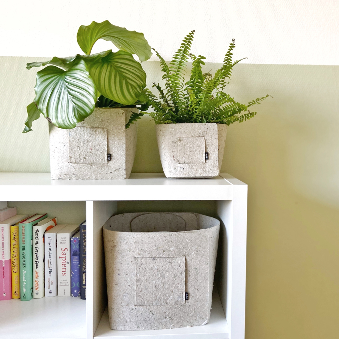 Deze mooie manden kan je voor veel verschillende dingen gebruiken. Denk bijvoorbeeld aan een mand voor je plaids of als opberger voor in de welbekende blokjeskast. Door de warme uitstraling van het gerecycled vilt, cree?er je meteen sfeer in huis of op kantoor.