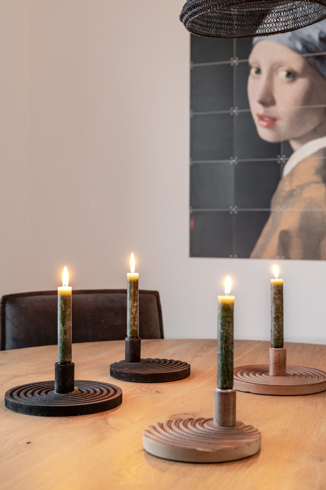Met deze stoere kandelaar krijgt ieder hoekje in huis direct meer sfeer! Het cirkelpatroon voegt een eigentijdse flair toe aan het geheel. Plaats de kandelaar op de salontafel of een dressoir met een mooie dinerkaars.