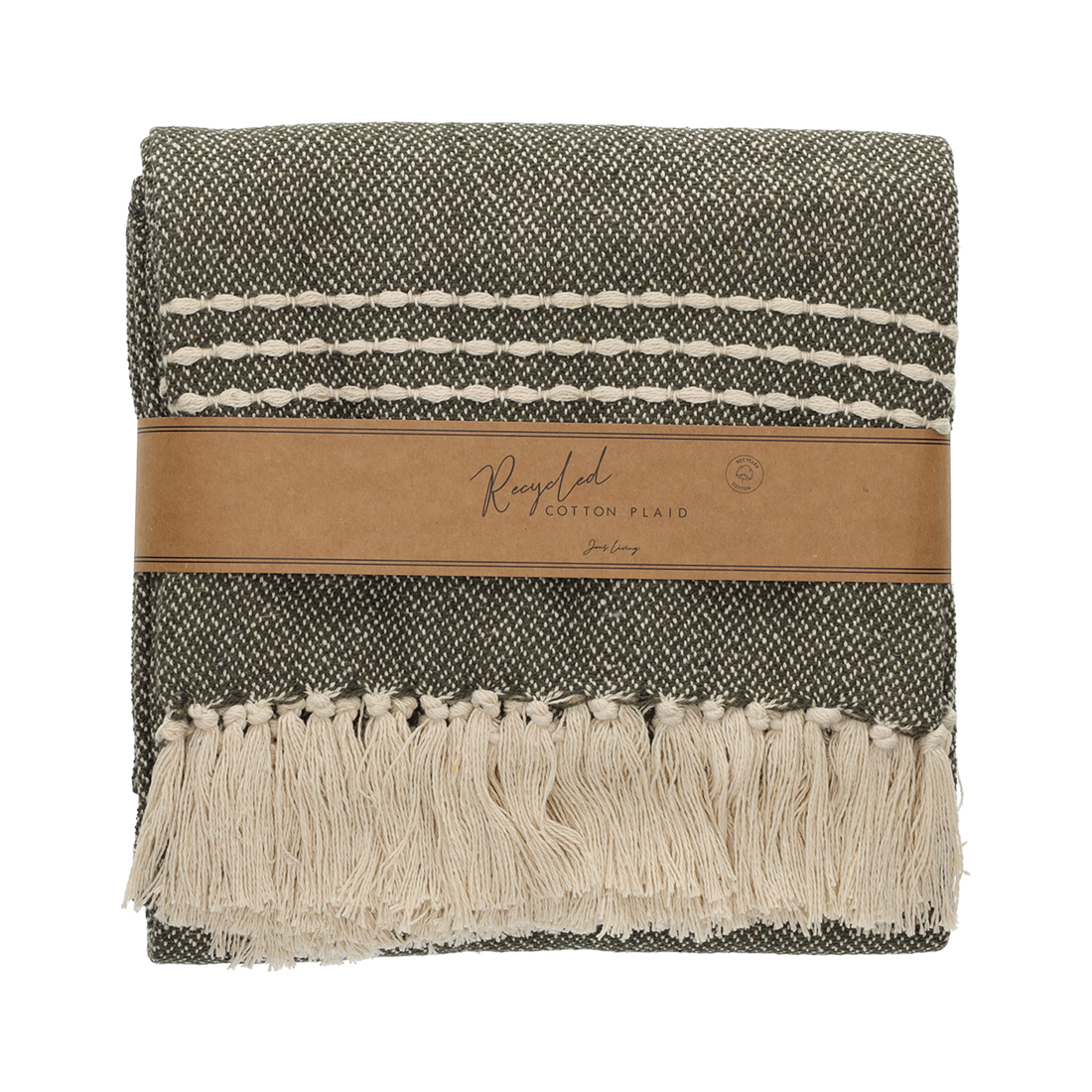 Dit plaid uit India is gemaakt van gerecycled katoen en heeft daardoor een duurzaam karakter. Met het originele patroon en de trendy kwastjes is dit plaid een leuke verschijning in je interieur. Leg het plaid uitgevouwen op de bank of op het bed of gebruik dit kleed om heerlijk onder te kruipen tijdens de koude winterdagen.