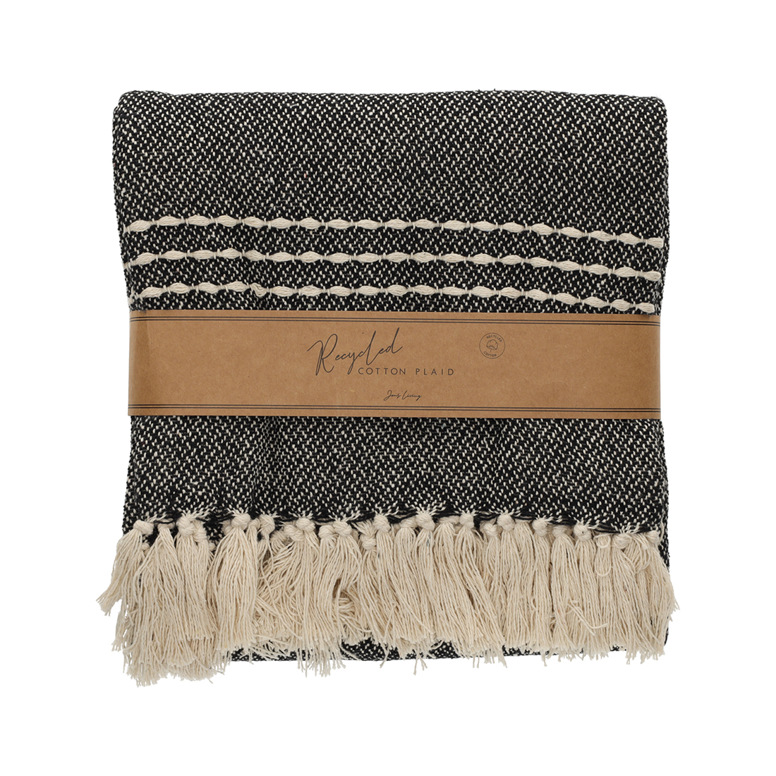 Dit plaid uit India is gemaakt van gerecycled katoen en heeft daardoor een duurzaam karakter. Met het originele patroon en de trendy kwastjes is dit plaid een leuke verschijning in je interieur. Leg het plaid uitgevouwen op de bank of op het bed of gebruik dit kleed om heerlijk onder te kruipen tijdens de koude winterdagen.