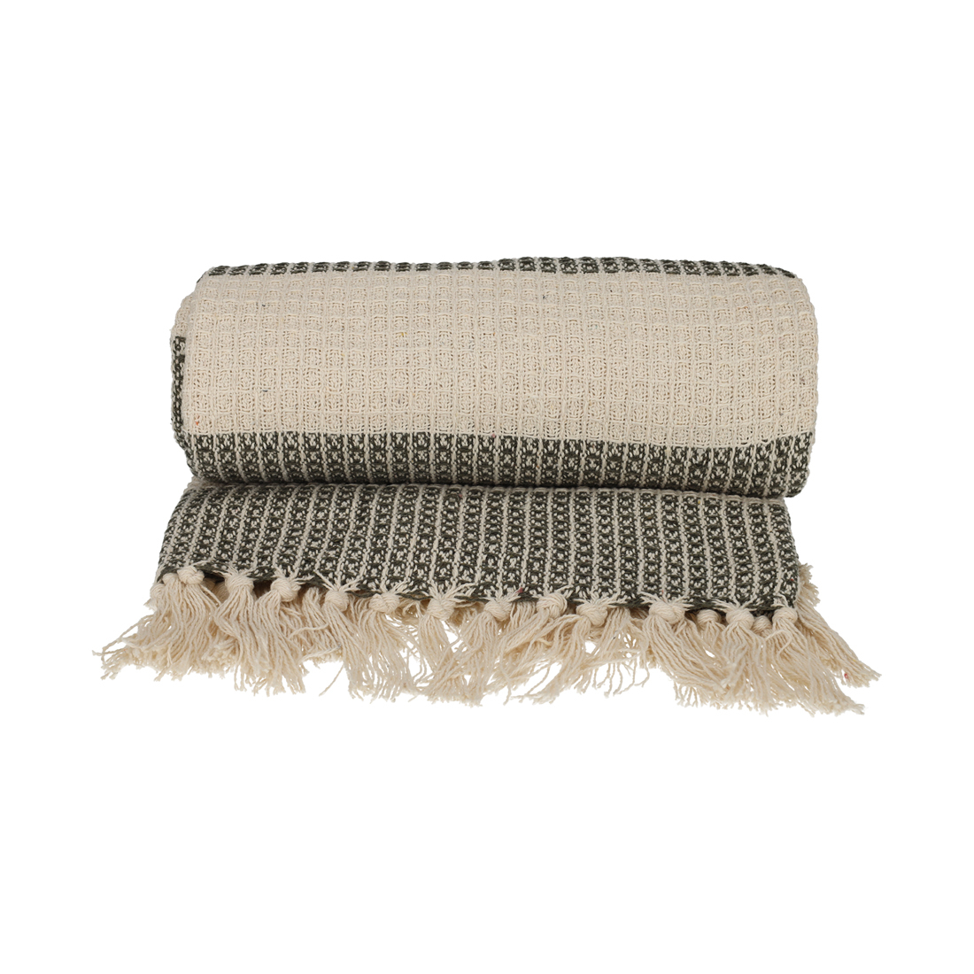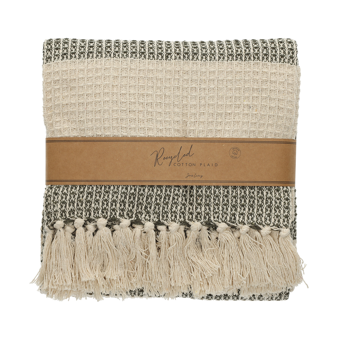 Dit plaid uit India is gemaakt van gerecycled katoen en heeft daardoor een duurzaam karakter. Met het originele patroon en de trendy kwastjes is dit plaid een leuke verschijning in je interieur. Leg het plaid uitgevouwen op de bank of op het bed of gebruik dit kleed om heerlijk onder te kruipen tijdens de koude winterdagen.