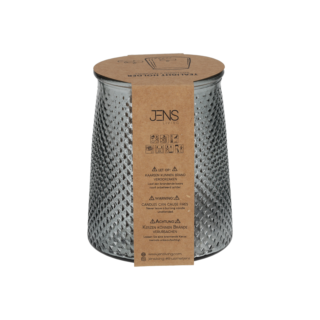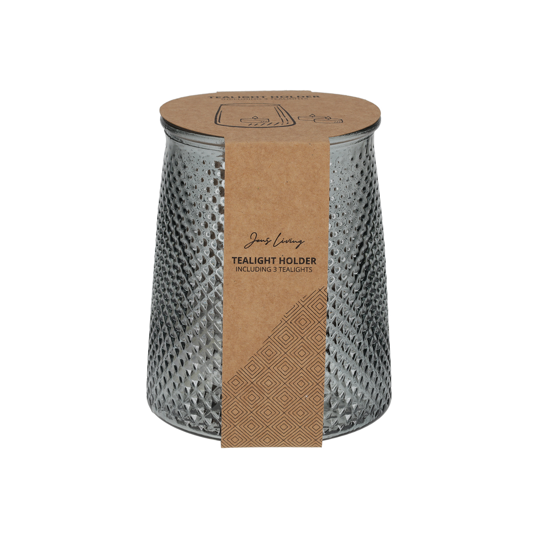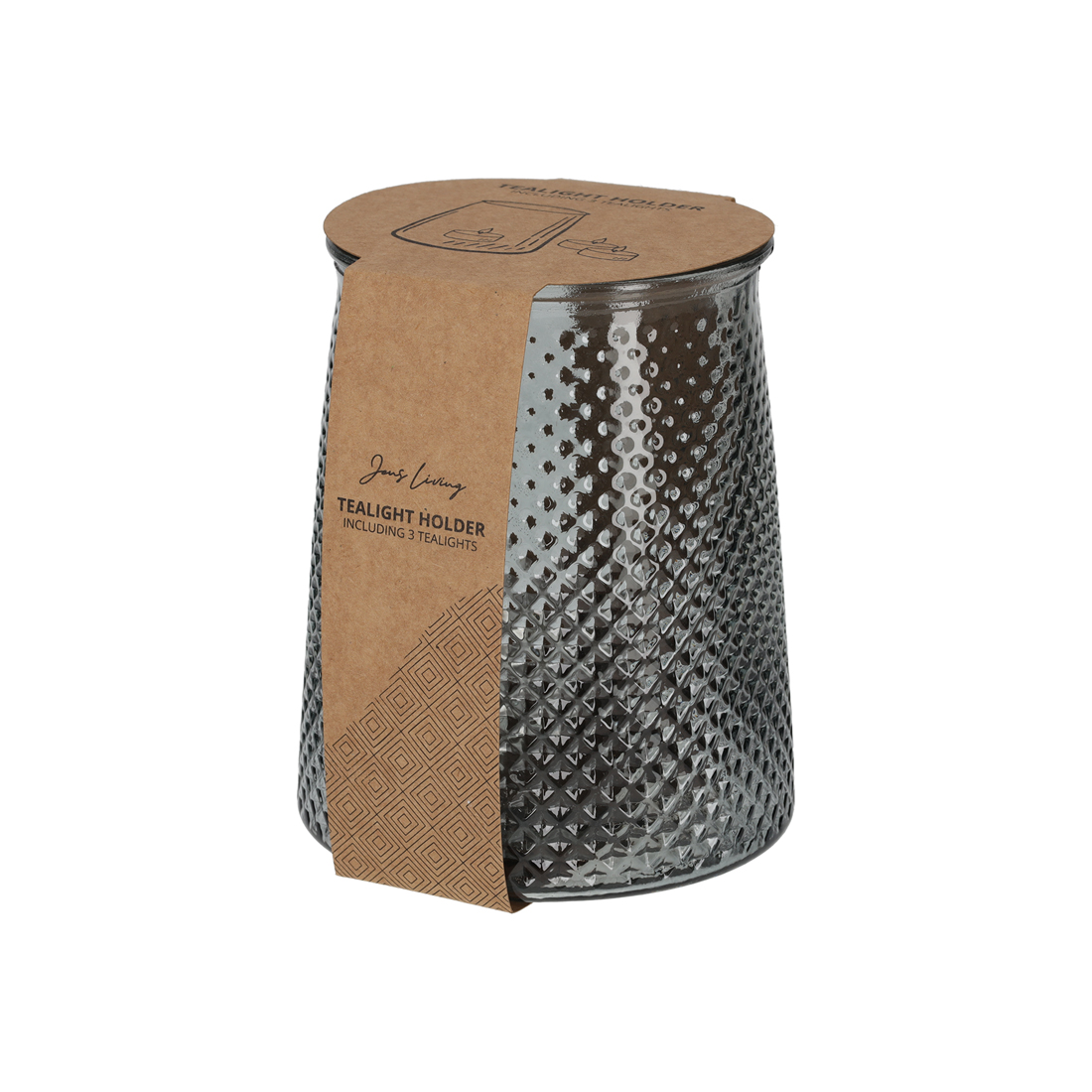 Creëer sfeer in huis met deze mooie theelichthouder. De theelichthouder is gemaakt van glas en heeft een tijdloos patroon, hierdoor past hij perfect in ieder interieur. Naast dat dit artikel gebruikt kan worden als theelichthouder, kan deze ook gebruikt worden als een leuke vaas. Inclusief drie theelichten.