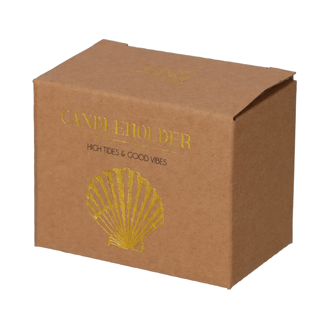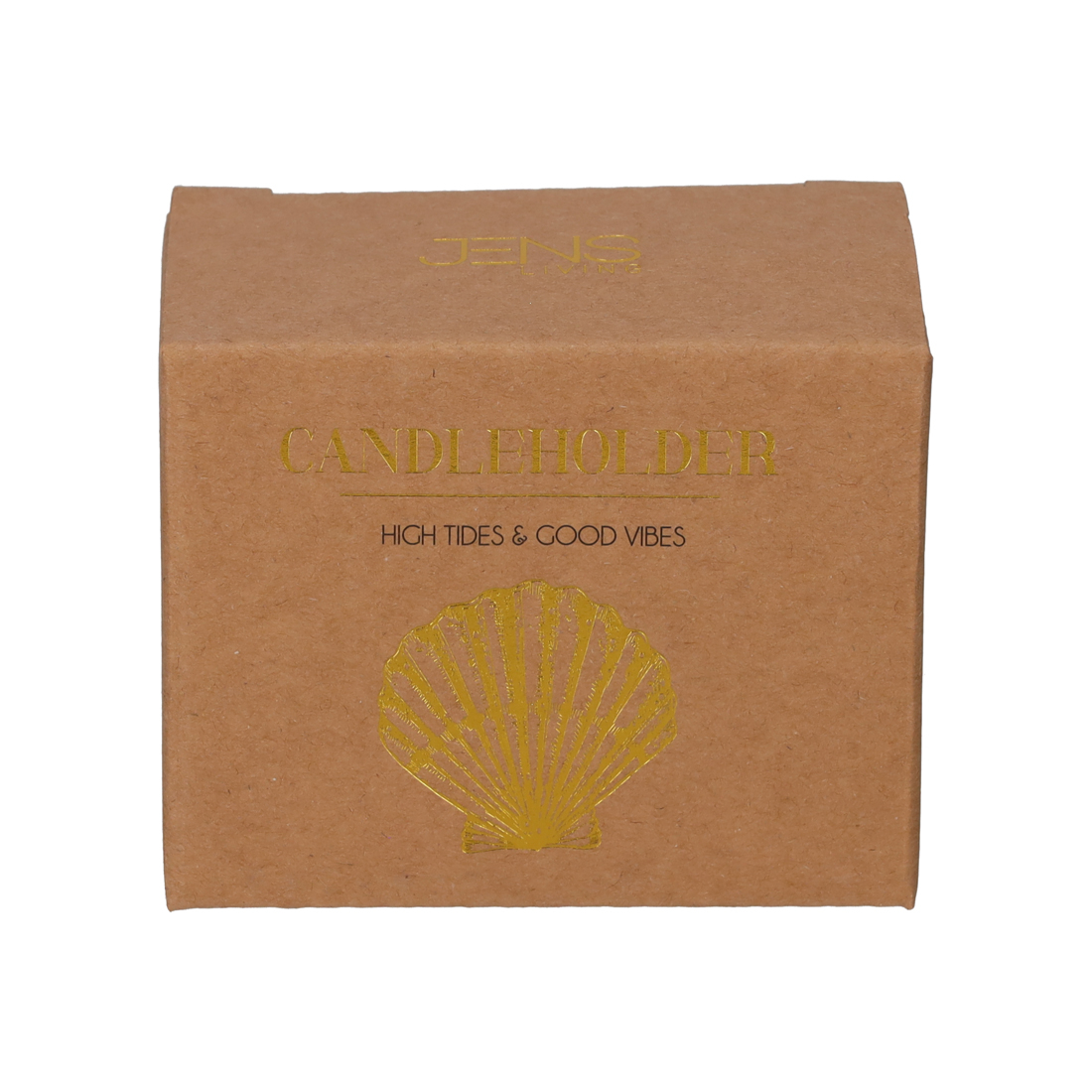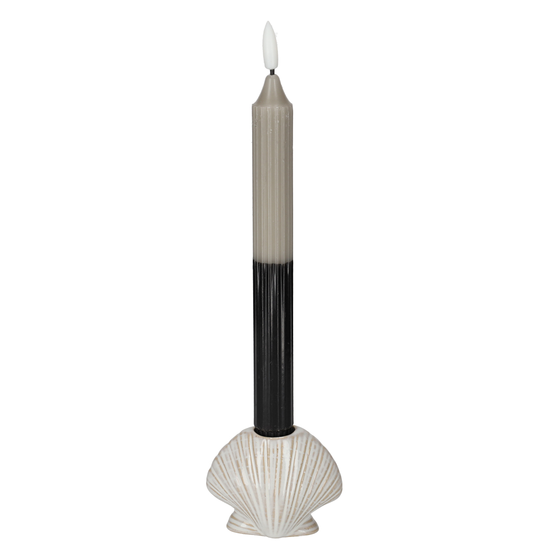 Met deze kandelaar haal je de rustgevende sfeer van het strand in huis. De porseleinen houder heeft de vorm van een schelp en biedt ruimte voor een dinerkaars.