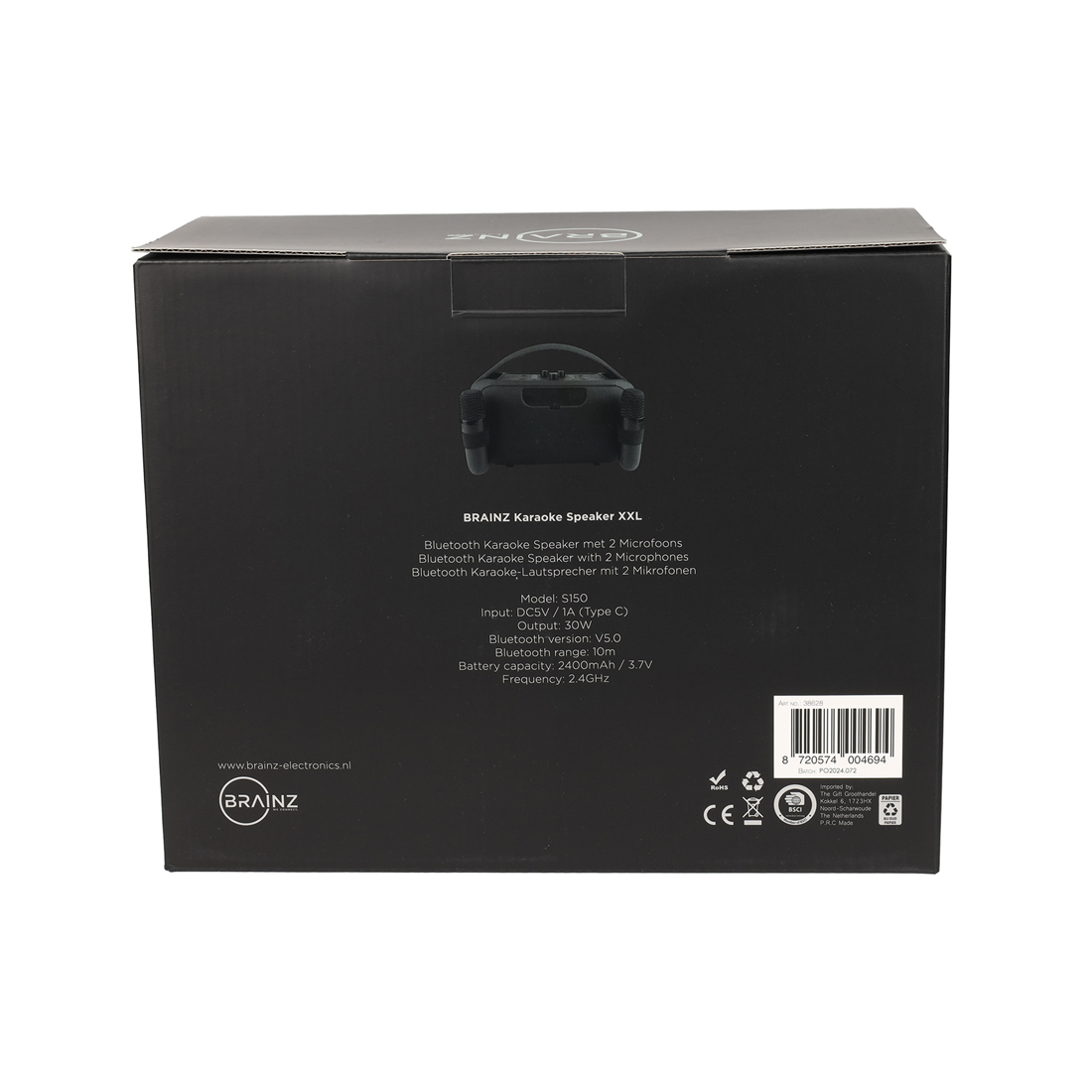 Zing de mooiste duetten met de Karaoke Speaker XXL! Deze speaker met een vermogen van maar liefst 30 watt beschikt over twee draadloze microfoons. De microfoons kunnen harder en zachter worden gezet en hebben een stemvervormingsfunctie. Een lagere bas of hogere tonen? Geen probleem! Met de knoppen op de bovenkant kan de muziek gemixt worden. De speaker beschikt over een LED strip aan de onderkant en een inkeping aan de bovenkant die gebruikt kan worden als telefoonhouder. Naast bluetooth heeft deze speaker ook een DC5V, TF, USB, AUX- aansluiting en kan er ook een niet-draadloze microfoon aangesloten worden. Laat je muzikale talent volledig de vrije loop met deze geweldige karaoke speaker.