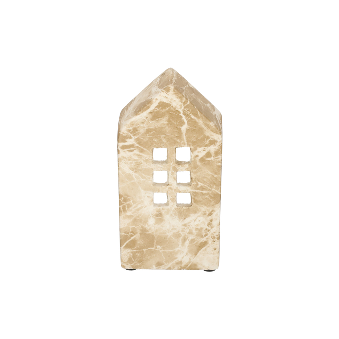 Dit charmante huisje met marmerlook is een stijlvolle toevoeging voor ieder interieur. Plaats een theelichtje achter het huisje en geniet van het schitterende kaarslicht door de ruiten. Zet meerdere huisjes naast elkaar en creëer een vrolijk verlicht dorpje.