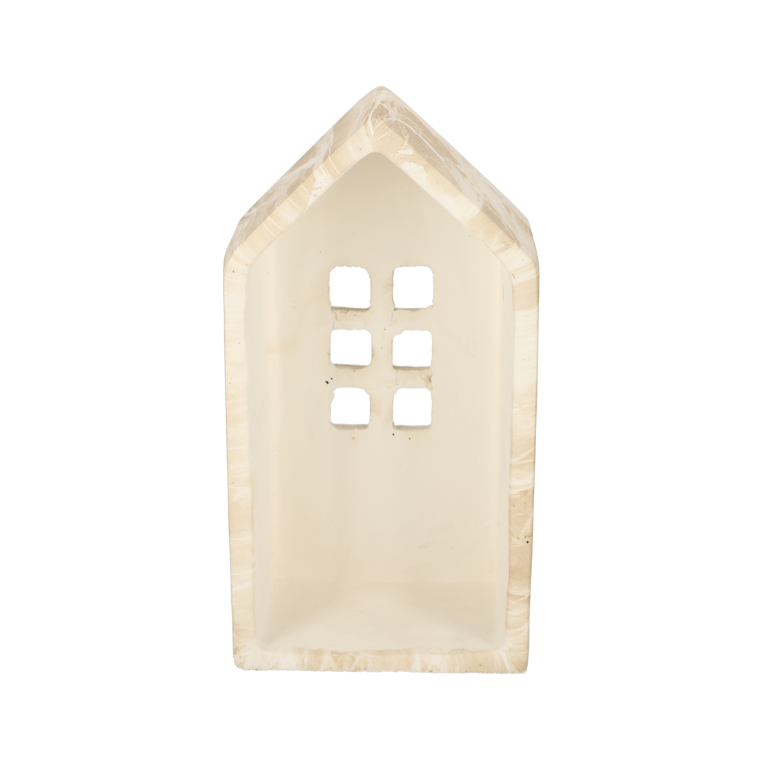 Dit charmante huisje met marmerlook is een stijlvolle toevoeging voor ieder interieur. Plaats een theelichtje achter het huisje en geniet van het schitterende kaarslicht door de ruiten. Zet meerdere huisjes naast elkaar en creëer een vrolijk verlicht dorpje.