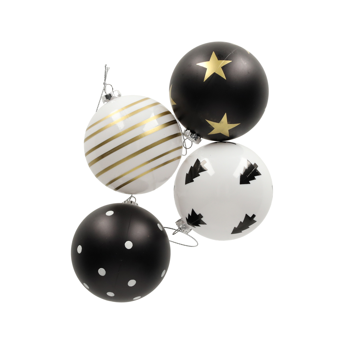 Deze set van vier kerstballen is de finishing touch in de kerstboom. Ze vrolijken je boom helemaal op met de winterse prints. Perfect om de kerstsfeer te versterken en de gezelligheid in huis te brengen!