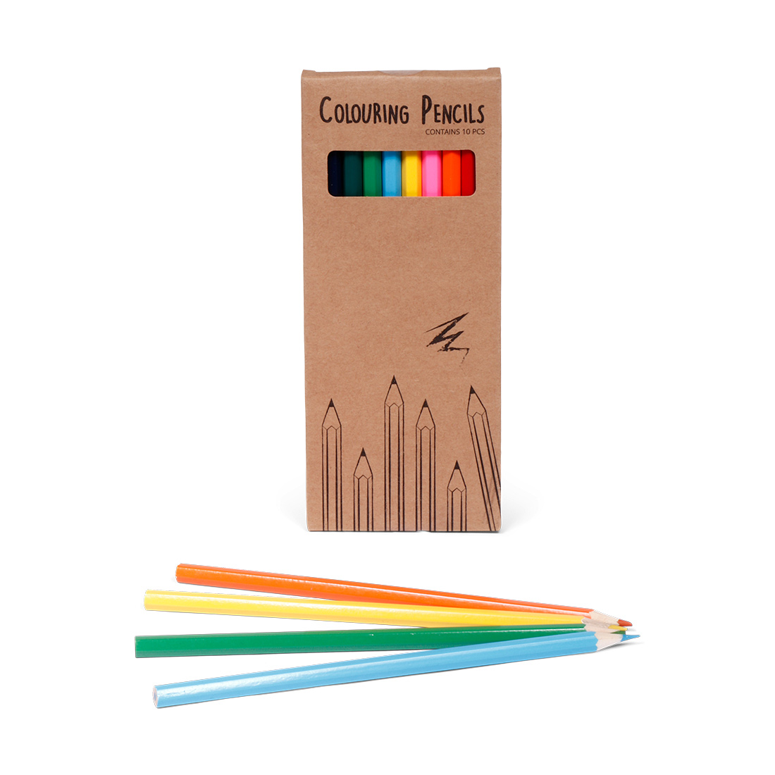 Deze set met kleurpotloden bestaat in totaal uit 10 potloden. De kleurpotloden worden geleverd in een originele kraft verpakking.