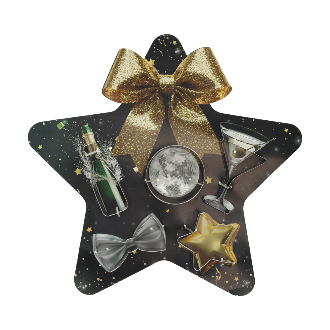 Met deze set van 5 koekjesvormen bak je de lekkerste koekjes in partythema. De set bevat de vormen van een strik, champagnefles, discobal, ster en een cocktailglas. Na het bakken kun je de koekjes nog verder versieren met glazuur en sprinkles om ze helemaal tot leven te brengen.