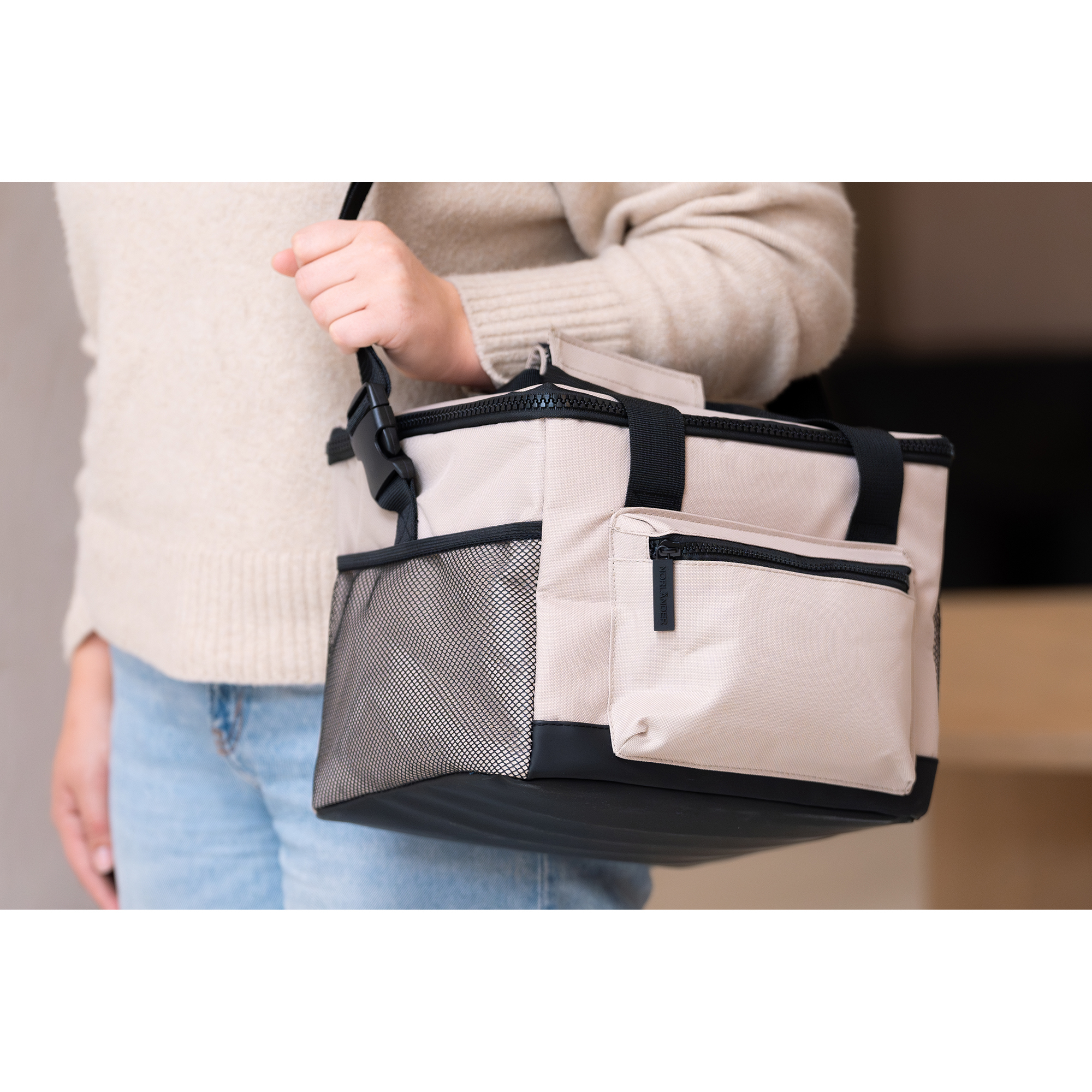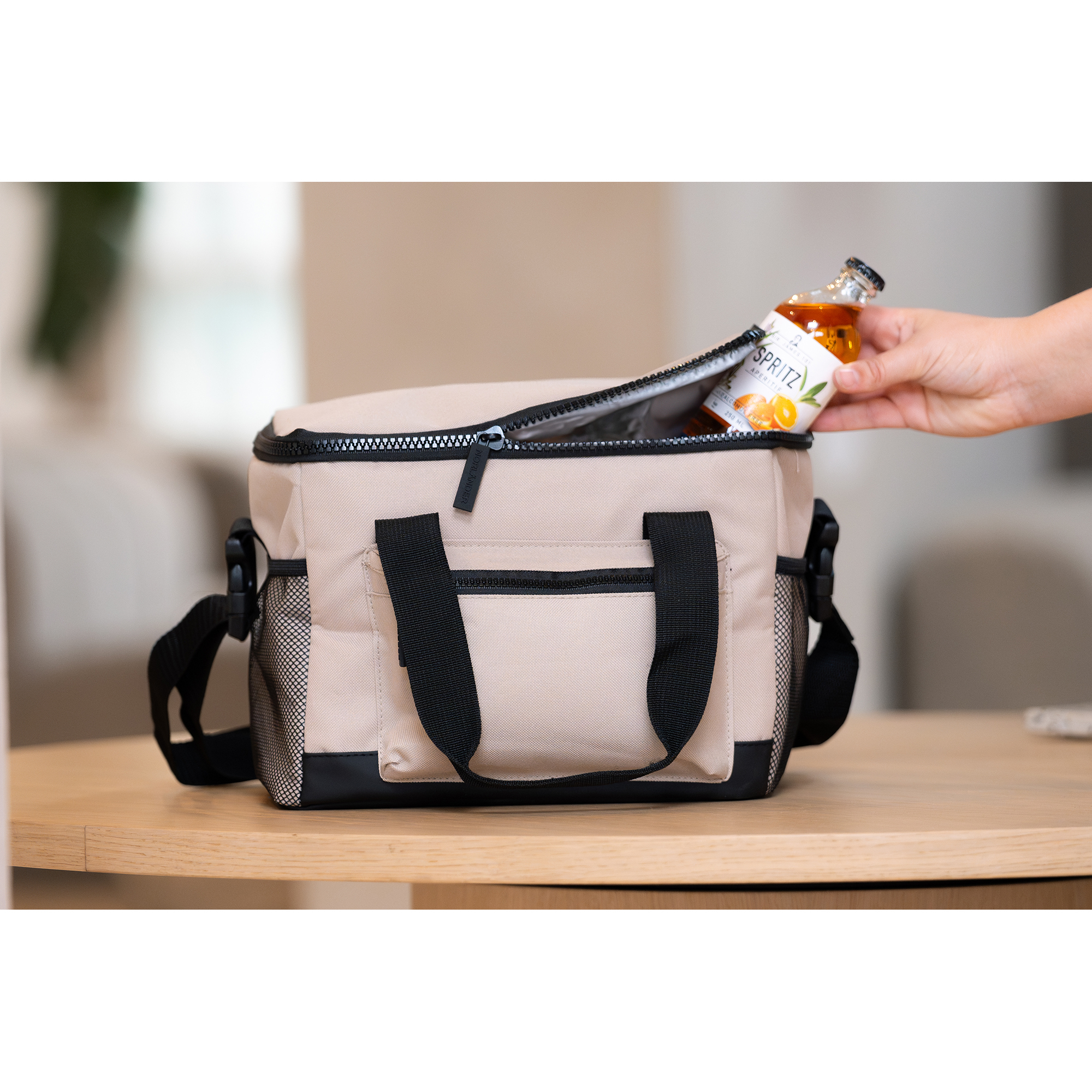 Deze aantrekkelijke Simply Green koeltas is gemaakt van gerecycled polyester. In de koeltas zijn maar liefst 8 gerecyclede PET flessen verwerkt. De tas heeft een ruim en isolerend hoofd compartiment, een voorvakje en aan beide zijden een ruim netvak. Neem de tas mee middels de verstelbare band of aan de draaghengels. De band kan eventueel verwijderd worden van de koeltas.