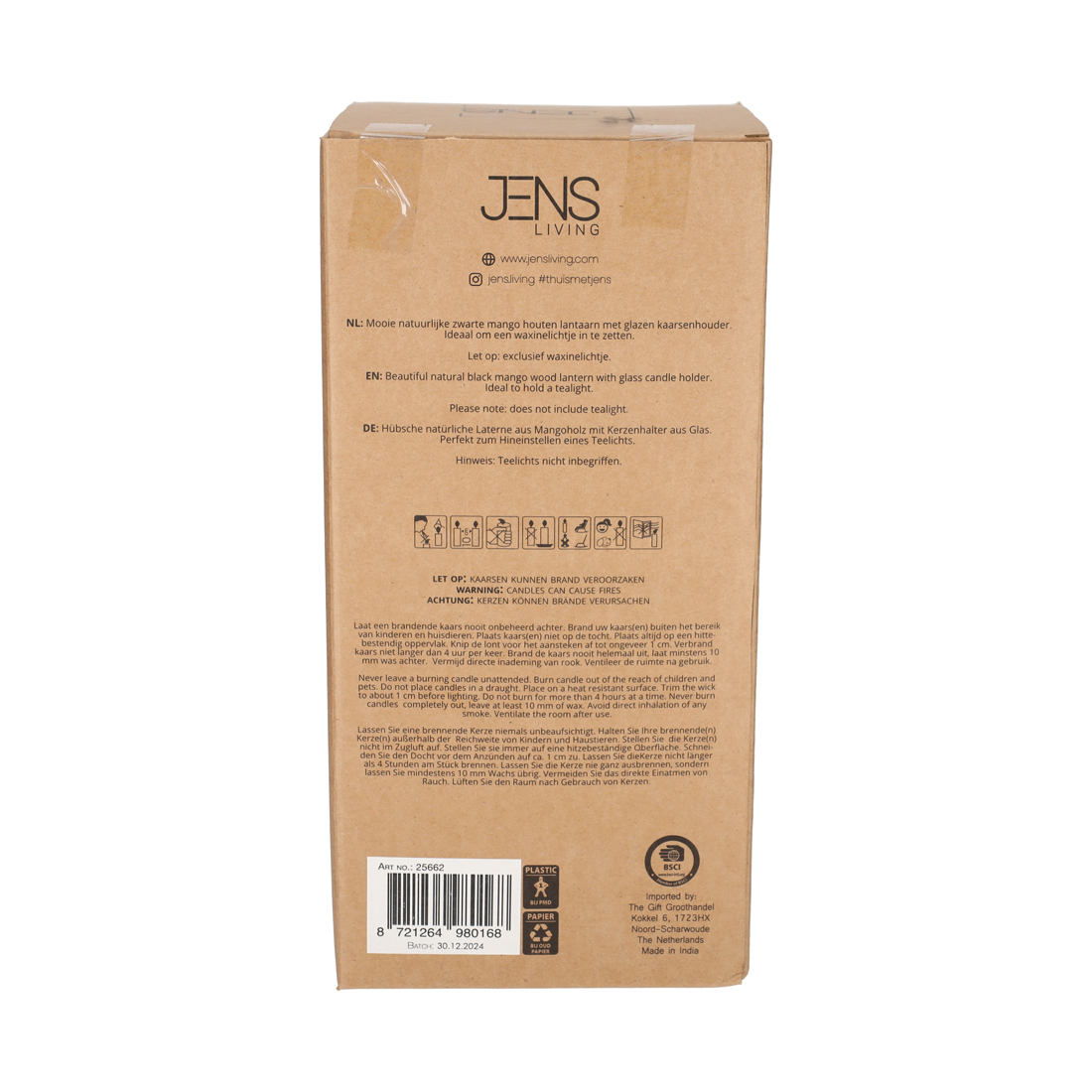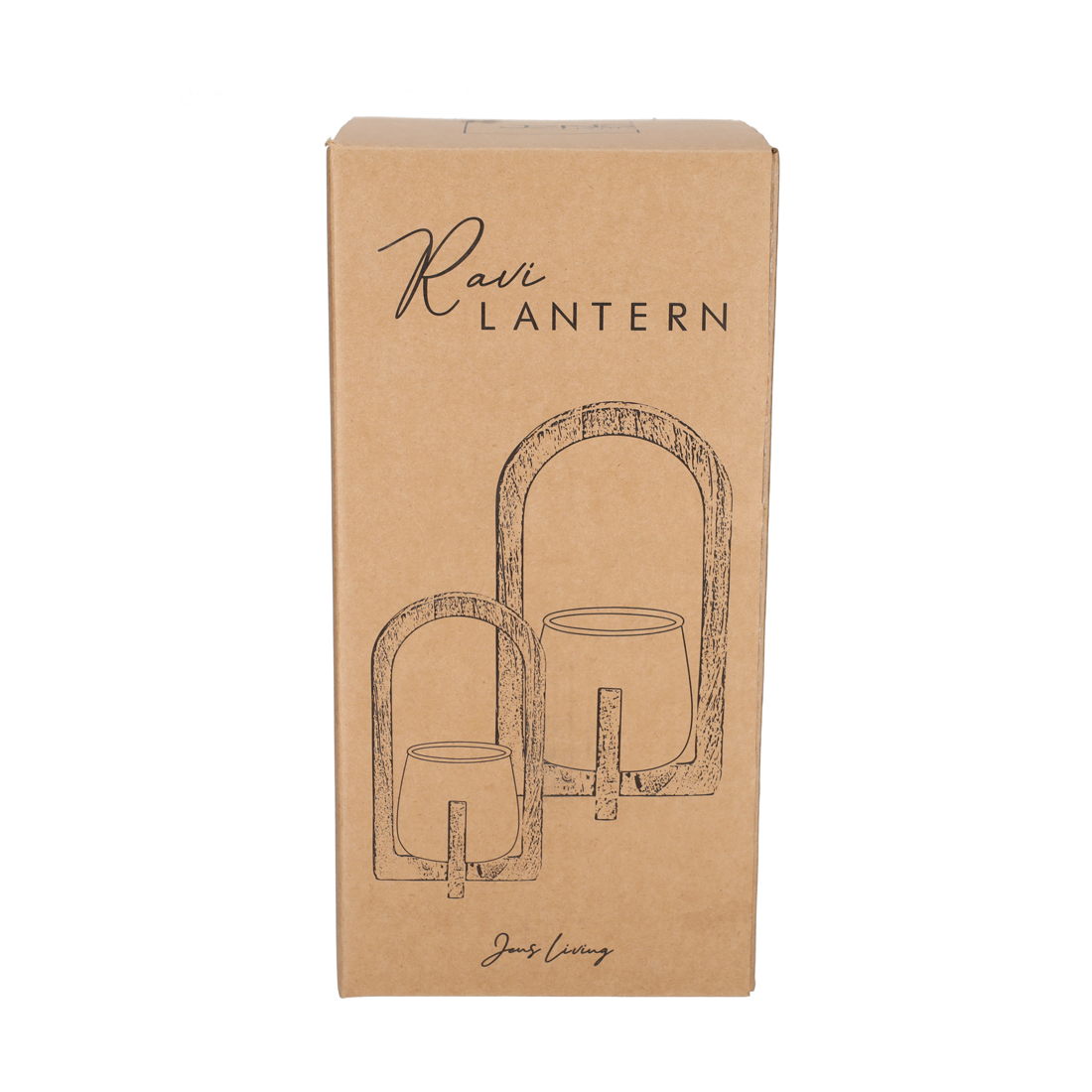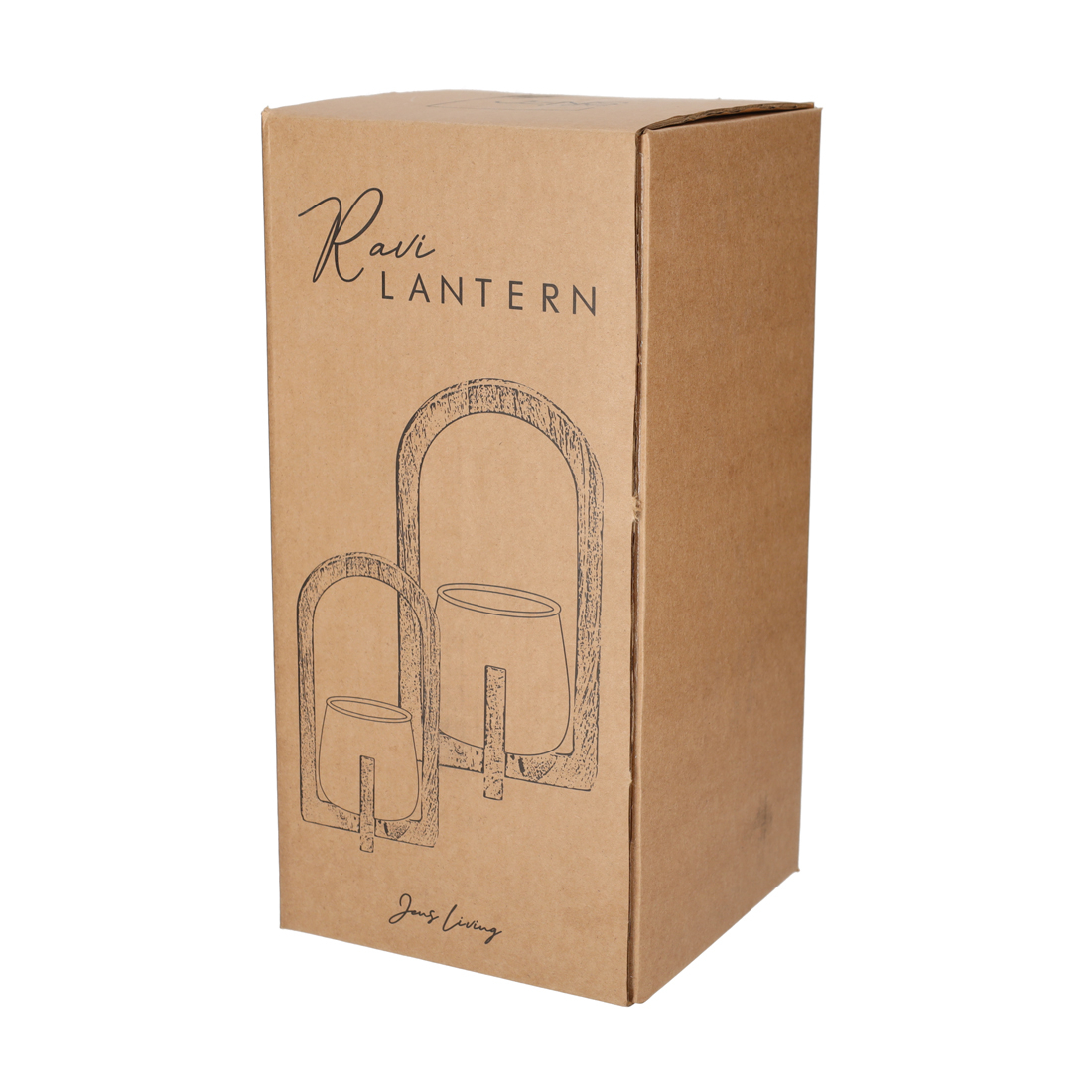Deze stijlvolle lantaarn heeft door de combinatie van het gebogen houten frame en het warm getinte glas een rustieke uitstraling die past in moderne en landelijke interieurs. Door de unieke afwerking van het glas wordt het kaarslicht op sfeervolle wijze verspreidt door de ruimte.