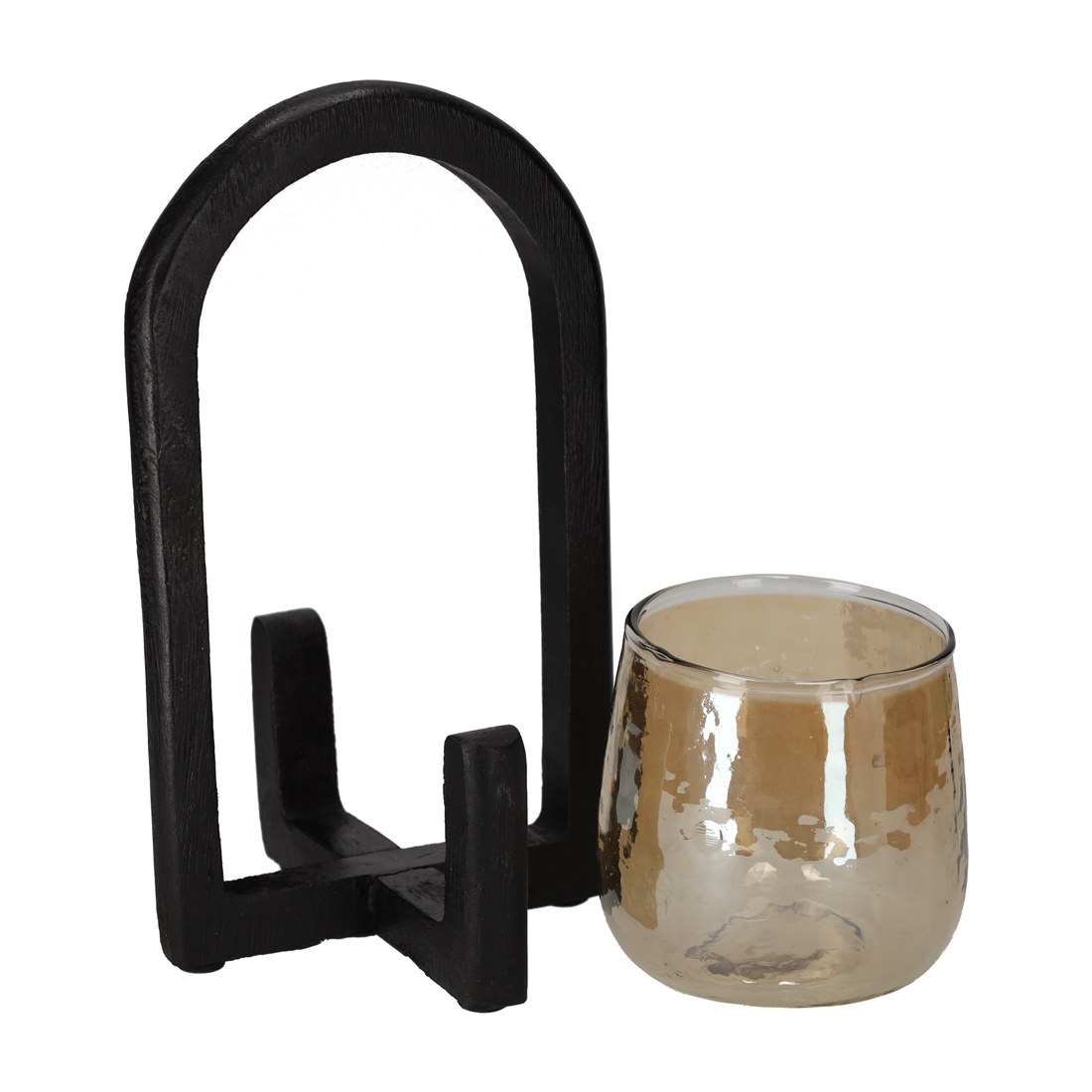 Deze stijlvolle lantaarn heeft door de combinatie van het gebogen houten frame en het warm getinte glas een rustieke uitstraling die past in moderne en landelijke interieurs. Door de unieke afwerking van het glas wordt het kaarslicht op sfeervolle wijze verspreidt door de ruimte.