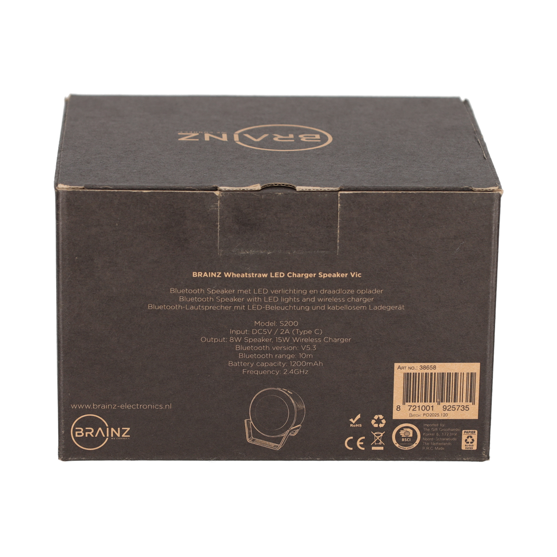 Plaats je telefoon tegen het bamboehouten vlak om deze draadloos op te laden, terwijl je geniet van het geluid. Bovendien is de speaker uitgerust met sfeervolle LED-verlichting, die een extra dimensie toevoegt aan je muziekervaring. Tegenwoordig ondersteunen bijna alle mobiele telefoons het draadloos opladen, de telefoon moet voorzien zijn van Qi technologie. De LED Charger Speaker Vic wordt mee geleverd met een USB-C oplaadkabel.