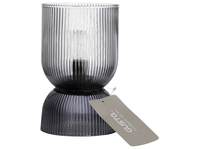 Deze mooie LED tafellamp van Gusta heeft een opvallende diabolo vorm. Hij werkt op batterijen en kan dus overal neergezet worden, ideaal! Het smoked glas heeft een voelbaar ribbelpatroon, staat heel erg stijlvol in je interieur. En in de zomer gebruik je de lamp fijn buiten.