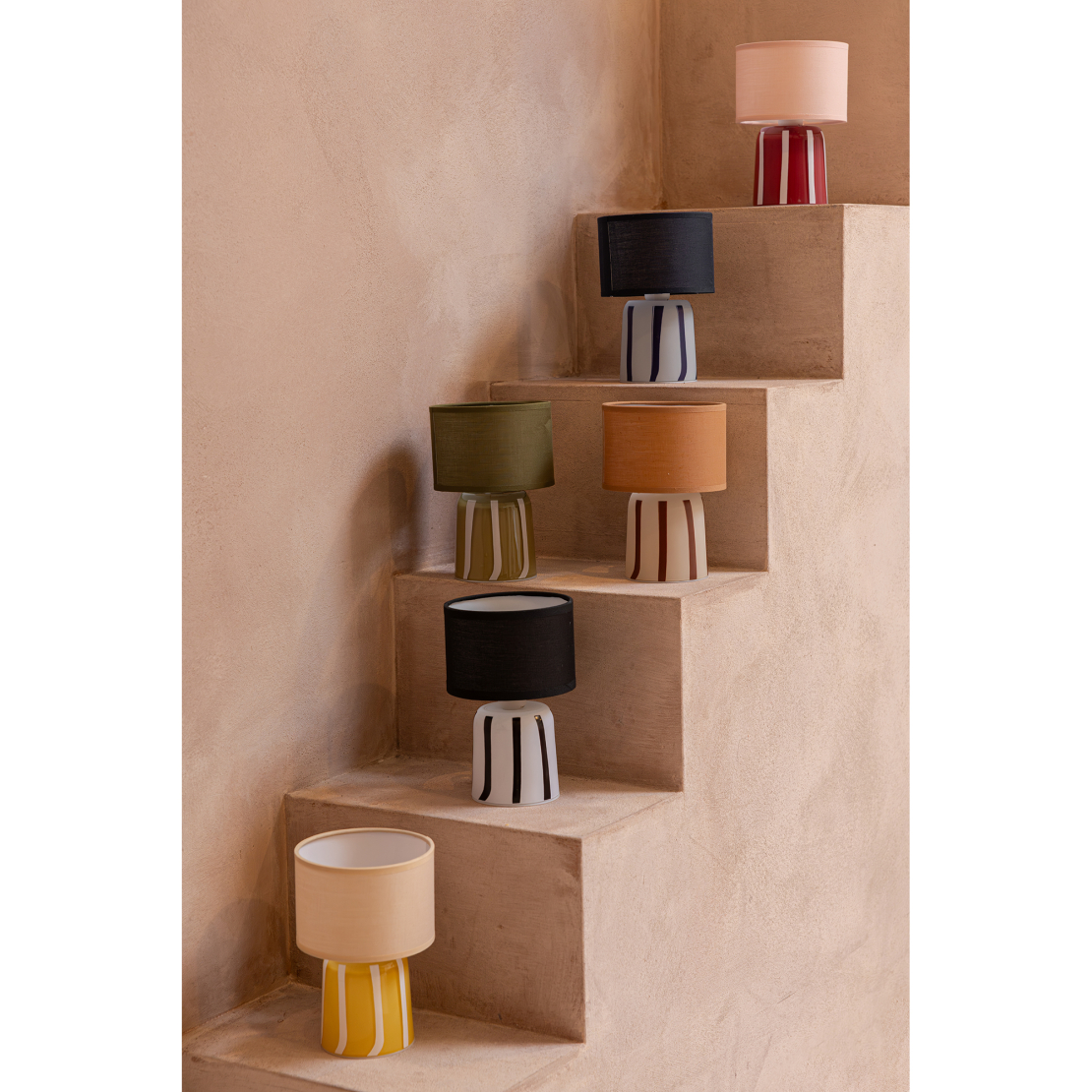 Deze tafellamp maakt iedere ruimte net wat gezelliger. Door de vrolijke tinten en speelse strepen is deze lamp het stralende middelpunt van de ruimte. Geef het lampje een plekje op een bijzettafel, nachtkastje of dressoir en laat de levendige kleuren je interieur opfleuren. Benodigd: 3x AA Batterijen, niet inbegrepen.