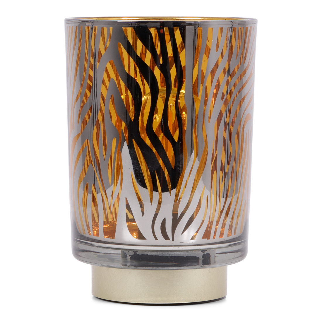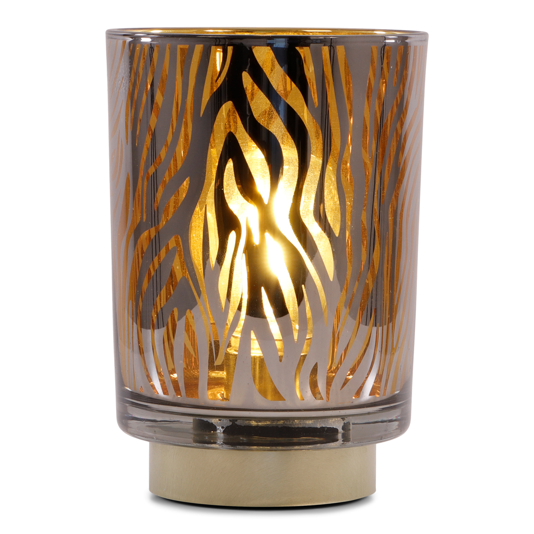 Verlicht je kamer met deze stijlvolle tafellamp van SENZA. De lamp is gemaakt van donkergrijs glas en voorzien van een goudkleurig patroon. Aan de binnenkant zit een lichtpeertje met smalle fitting die er gemakkelijk uit te draaien is. De kunststof bodem is tevens goud van kleur en gemaakt van kunststof. Het lichtpeertje kan vervangen worden en is 3V / 0,5W. Kortom een ware eyecatcher voor je interieur!
