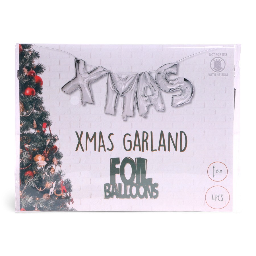 Het is weer kerstmis! Deze zilveren letterballonnen vormen het woord” XMAS” en vrolijken de boel helemaal op tijdens de feestdagen. De folieballonnen zijn eenvoudig op te blazen middels een bijgeleverd blaasrietje. Tevens zouden de letters kunnen worden opgehangen aan het bijgeleverde koord.