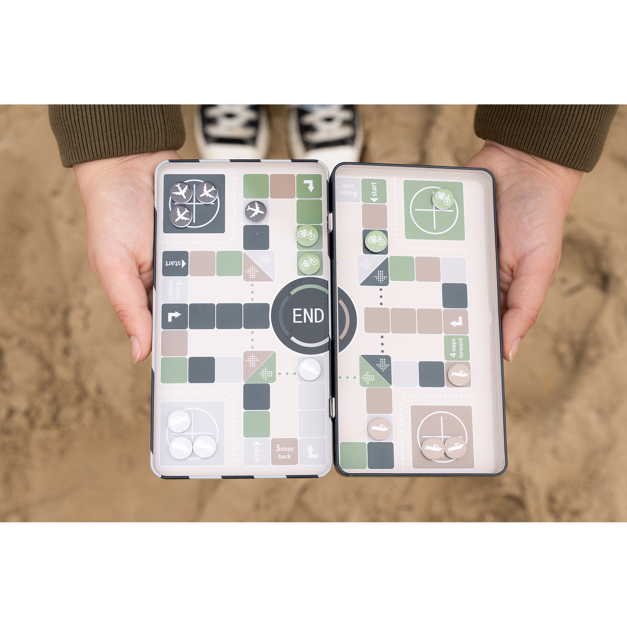 Maak de reis een stuk leuker met dit magnetische bordspel! Het doel van het spel is om met je vier pionnen zo snel mogelijk een rondje om het bord af te leggen en veilig terug te keren naar je thuishonk. Dankzij de magnetische pionnen blijven de stukken stevig op hun plek, zelfs bij scherpe bochten en hoge heuvels. Dit bordspel is ideaal voor onderweg!