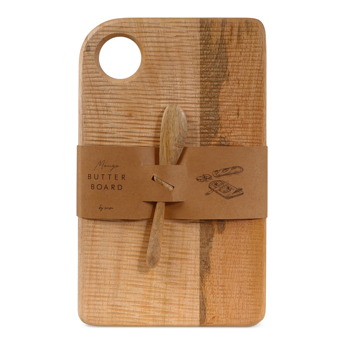 Het boterbord is dé nieuwe borreltrend! Met deze chique plank van mango hout heb je het ideale bord in handen. Deze plank uit India is aan één zijde met de hand gekerfd en vlak aan de andere kant. Daarnaast wordt de plank geleverd met een handig mesje. Een boterbord maken is erg eenvoudig. Smeer zachte roomboter over de plank en versier deze met toppings naar keuze. Denk aan verse kruiden, eetbare bloemen, honing, knoflook, vijgen en aardbeien. Je kunt eindeloos variëren! Uiteraard is deze mooie plank ook geschikt als serveerplank!