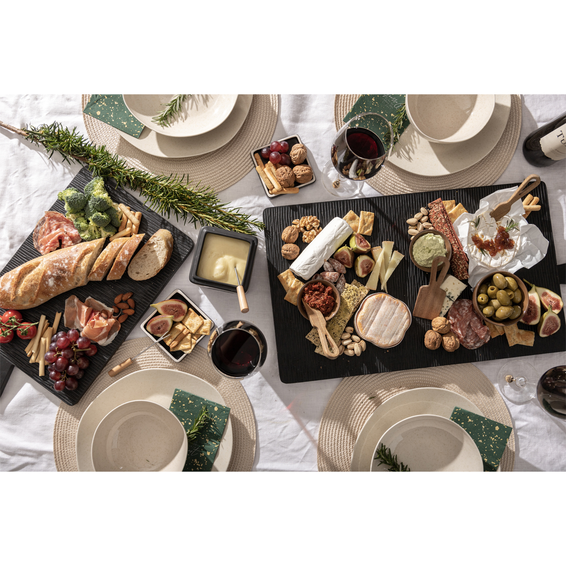 Met deze serveerplank van mango hout hoef je niet meer te kiezen welke hapjes je wilt presenteren! Deze plank uit India heeft een handig handvat en biedt ruimte voor onder andere charcuterie, kaas, nootjes, groenten en toastjes. De nerven op de voorkant van de plank zijn met de hand ingekerfd en geven deze serveerplank een luxe uitstraling.
