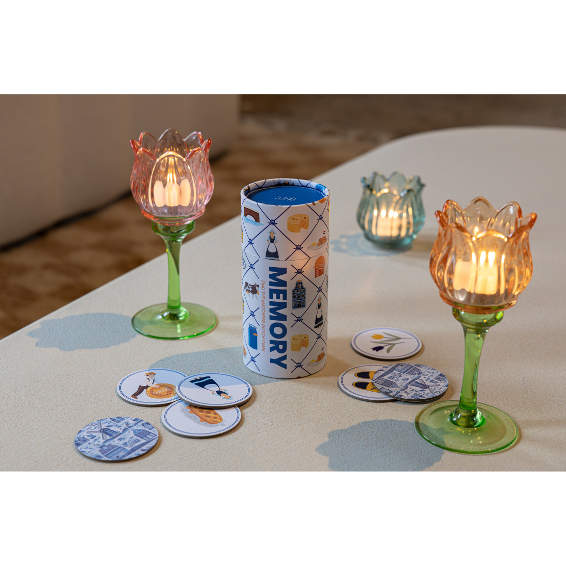Het JENS Living Memory spel is leuk voor het hele gezin. Memory is één van de bekendste en simpelste gezelschapspellen ooit! Het doel is om setjes te maken met twee identieke kaarten. Er liggen op de speeltafel 44 kaarten in Nederland stijl en de spelers moeten deze omkeren om setjes te zoeken. Je mag per beurt twee kaarten omkeren.