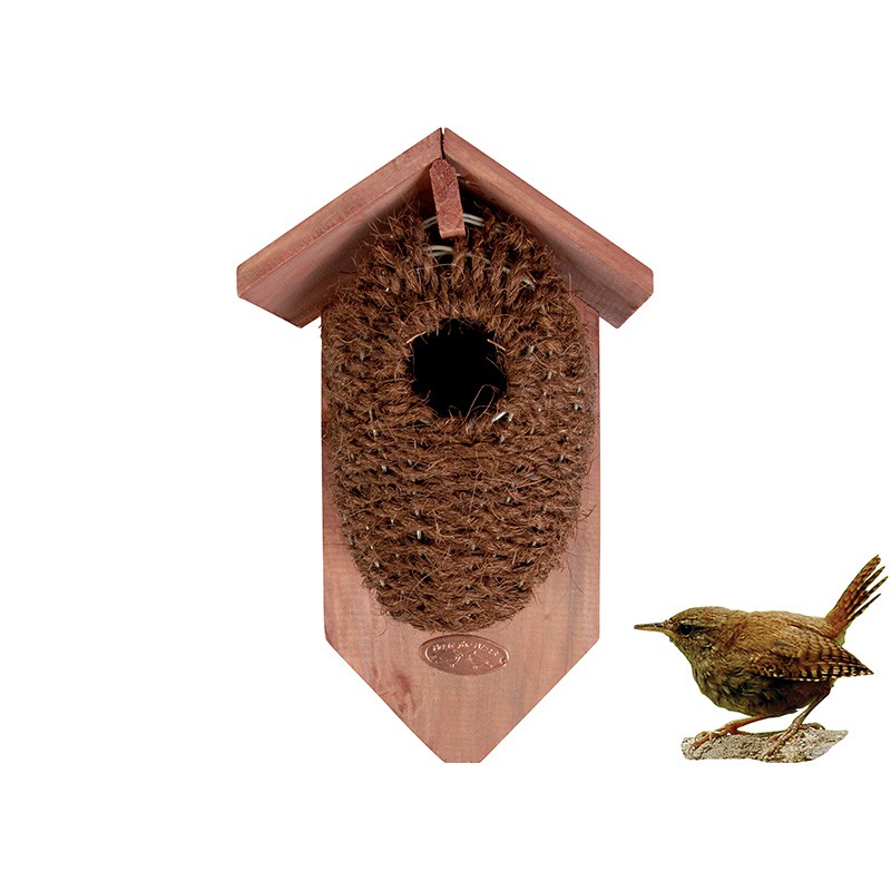 Deze traditionele nestbuidel met kokosharen biedt de Winterkoning een goede plek om in te nesten, om populaties van deze vogelsoort te behouden of weer terug te krijgen in een gebied. Daarnaast bewijst de nestbuidel een goede dienst voor vogels om te schuilen tegen het slechte weer in de winter.