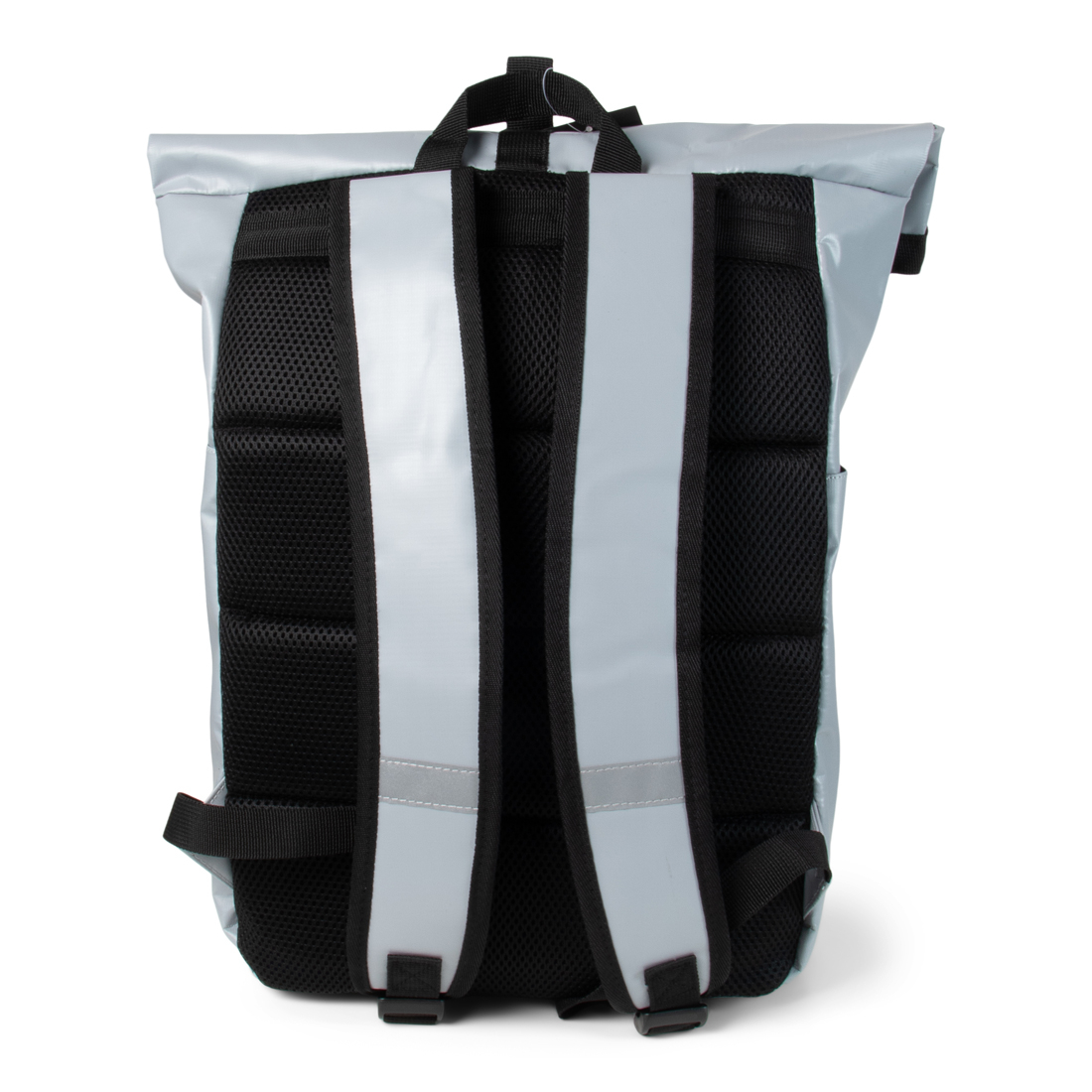 Deze opvallende rol rugtas is van waterafstotend tarpaulin gemaakt. Dit materiaal zorgt ervoor dat het een stevige en solide tas is. Aan de achterzijde zitten twee verstelbare schouderbanden en een gewatteerde rugvoering. De bovenzijde is oprolbaar en dicht te maken middels een buckle sluiting. Tevens kun je nog extra spullen opbergen in het voorvak met ritssluiting of in één van de twee zijvakken. Op de voorzijde zit een reflecterende streep zodat je ook in het donker goed zichtbaar bent.