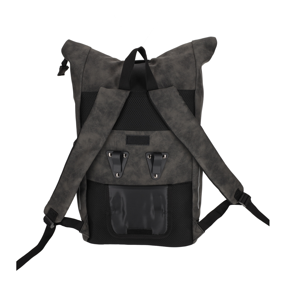 Trek het hele land door met deze praktische fiets rugtas van stoer nubuck vegan leer. De tas heeft een unieke en chique look. Aan beide zijden is een insteekhoes te vinden voor bijvoorbeeld een drinkfles. De voorzijde bevat een opbergvak dat af te sluiten is. Door het waterafstotende materiaal en de gecoate ritssluitingen, is de tas uitermate geschikt voor regenachtige dagen. De rugtas beschikt over een ruim compartiment met laptopvak en een afsluitbaar binnenvakje voor kleine accessoires. Middels de fietshaken aan de achterzijde kun je de tas bevestigen aan de bagagedrager van een fiets. Tot slot zorgt de reflectiestreep ervoor dat je goed zichtbaar bent en kun je middels de verstelbare schouderbanden de tas instellen op het juiste draagcomfort.