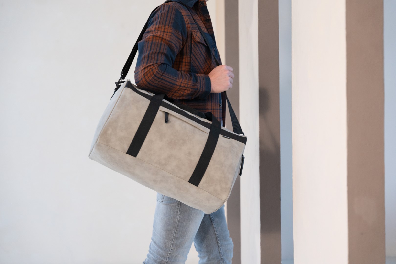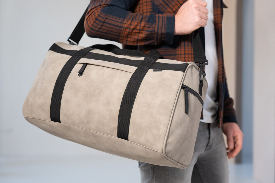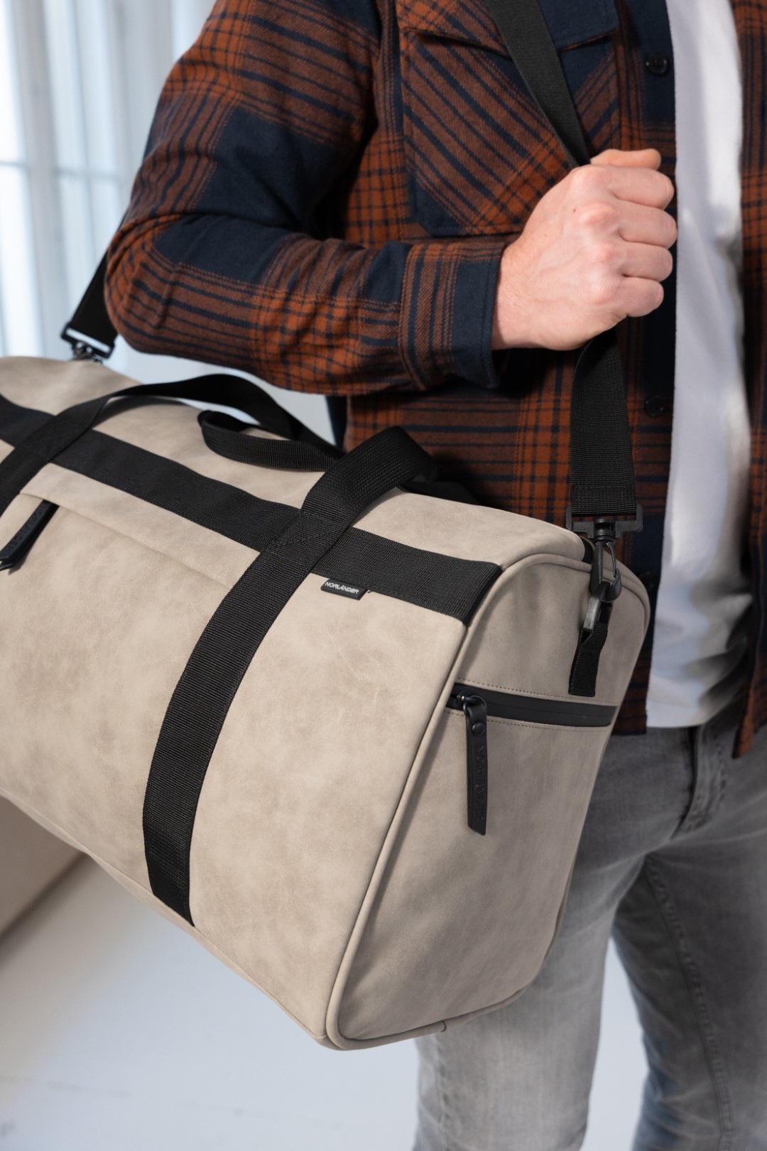 Ga zorgeloos op reis met deze luxe NORLÄNDER sporttas gemaakt van nubuck vegan leer. Het ontwerp oogt strak en chique. Kenmerkend zijn de fraaie zipper pullers die aan de sporttas zitten. Het afsluitbare voor- en zijvak zijn ideaal voor het opbergen van kleine accessoires. De tas is te dragen middels de draaghengels aan de bovenzijde of de verstelbare schouderband en beschikt over een ruim binnen compartiment. Al met al de perfecte tas om al je benodigdheden in mee te nemen.