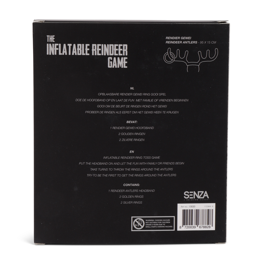 Het wordt lachen, gieren en brullen met dit opblaasbare rendier spel. Zet het rendierengewei op je hoofd zodat je tegenstanders kunnen ringwerpen. Het zorgt gegarandeerd voor pret en vertier. Gooi jij de meeste ringen raak? Dan ben je de winnaar!
